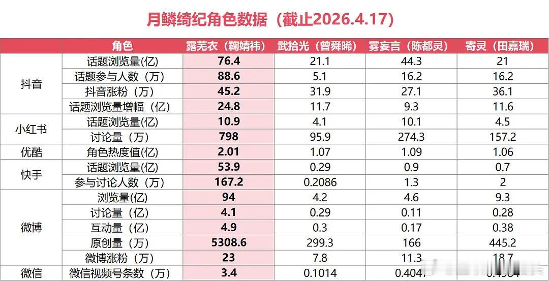 月鳞绮纪角色全平台书局汇总表来了这波算是谁有效播剧?