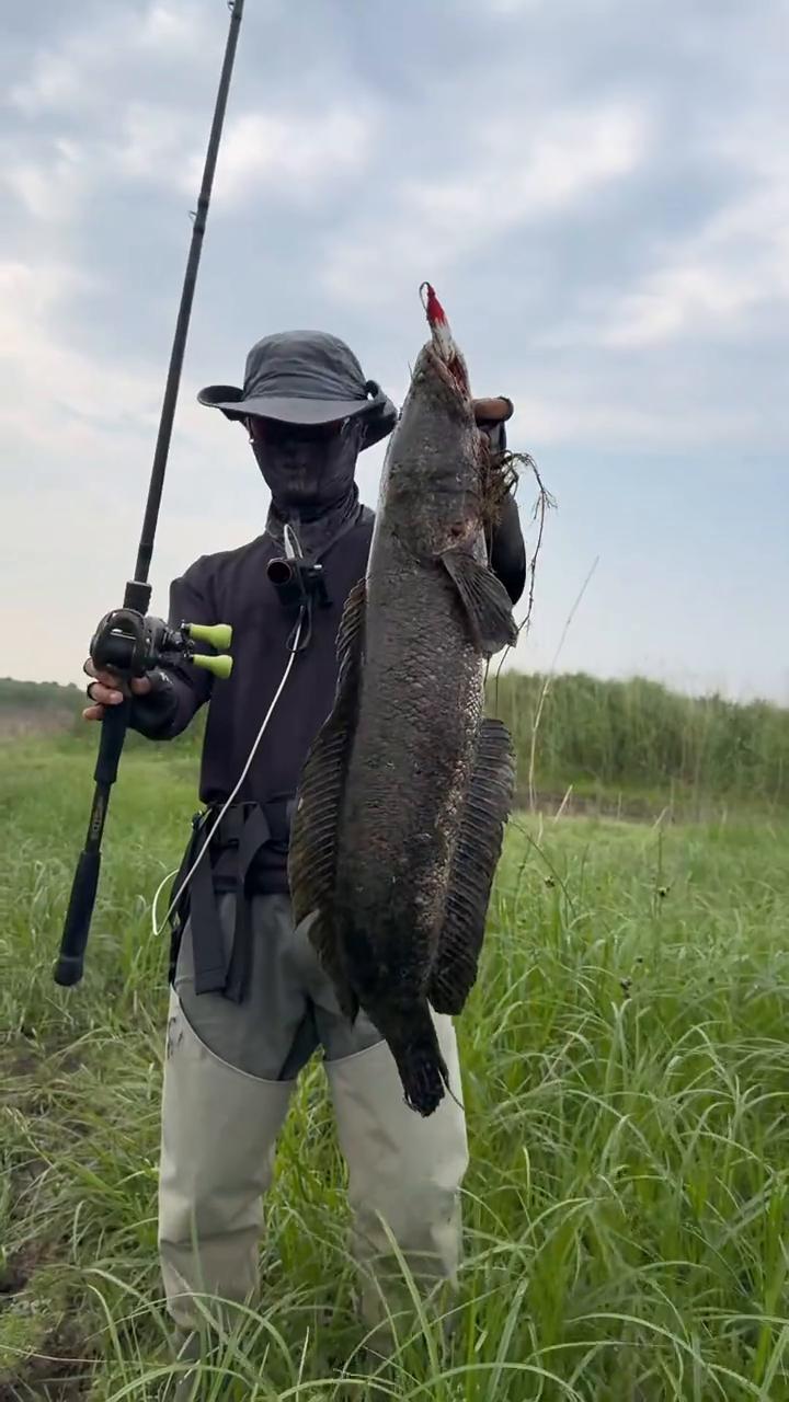 一小时后真正的博弈开始了。 这尾10+巨兽就在下面看着我的饵,必须要细腻一点,否则很难擒获。来了,这只杆子今天占了两条这样的,刚刚挑鱼挑断了,样品杆,但是很猛的,这条杆子也是承受了不该承受的巨物了。靠近点,雷娃带着水草,打雷子,帅的。