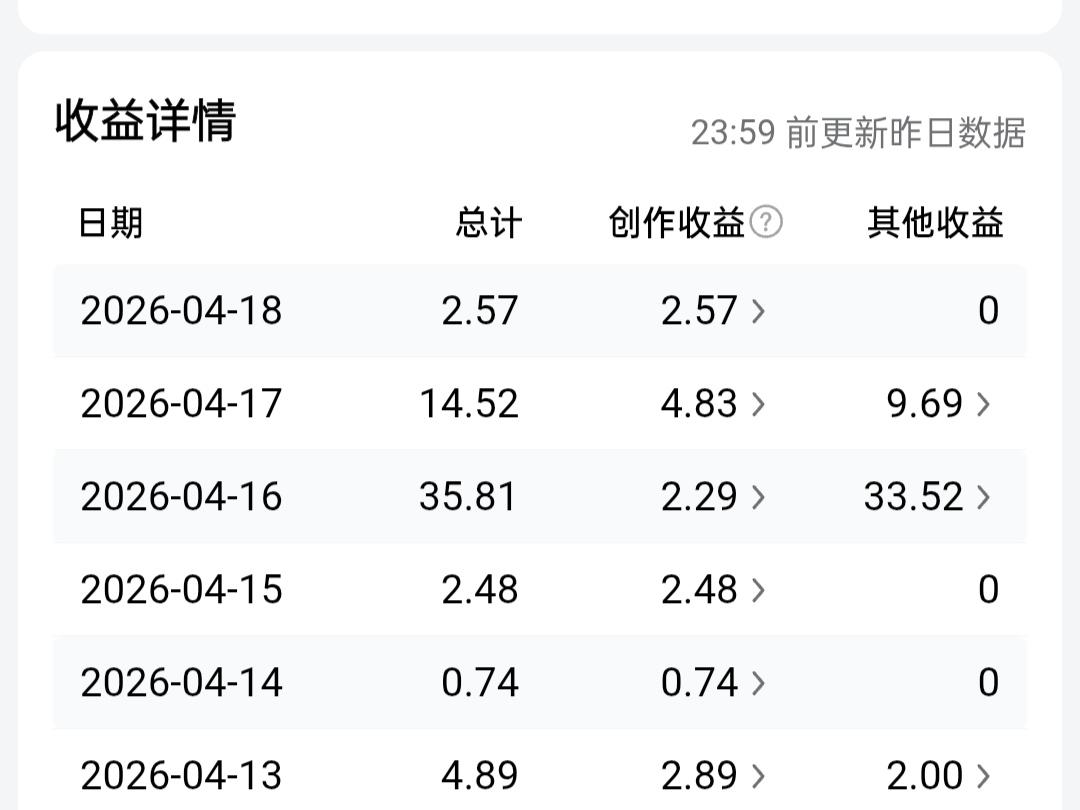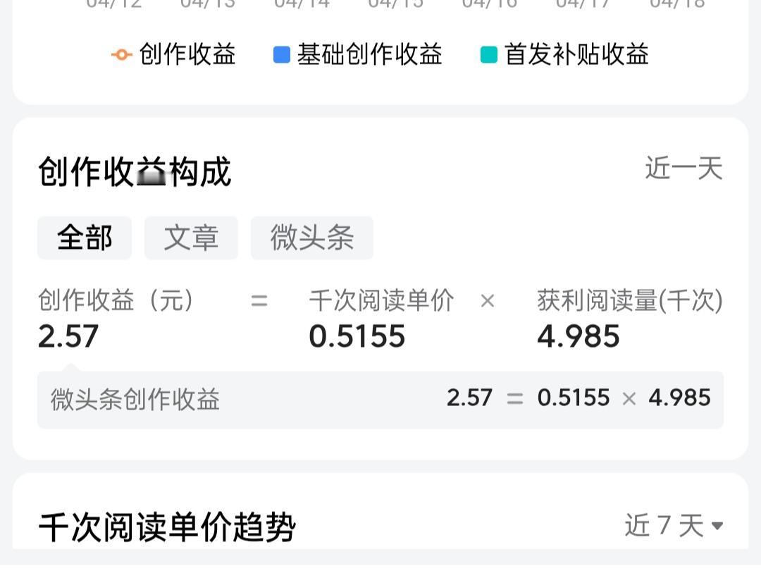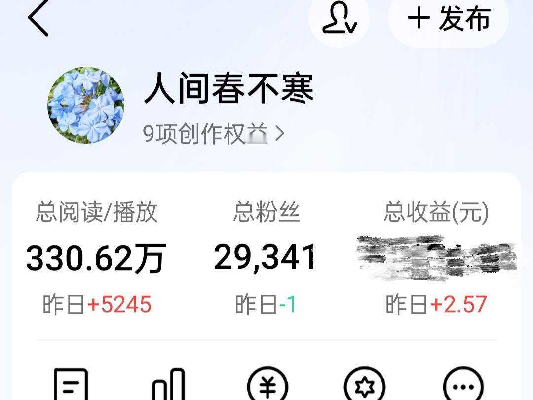 今日头条创作收益2.97元,阅读量5245,新增粉丝-1位,千次阅读单价0.5155。 连日奔波看病,今日在家静养休息,登录头条的时间依旧有限。如今平台规则愈发明显,不更新就几乎没有收益,内容发出去缺少互动评论,粉丝也会悄悄流失,今天便又掉了一位。 说实话,做头条创作真的不容易,只能一边摸索一边慢慢前行,唯有坚持才会有收获。比起文笔出众、思路灵动的大咖友友,我的收益始终只有几毛、几块,平平淡淡。 但我早已心态平和,知足常乐就好。头条收益顺其自然,不必强求,好好照顾自己,开开心心过好每一天,便足矣。