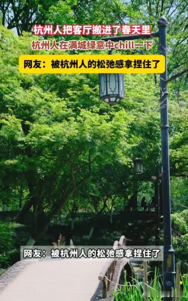 杭州人把客厅搬进了春天里杭州人的春日仪式感绝了!公园里全是自带装备的市民,有的带简易桌椅,有的直接扛沙发来,还有人支起小炉子煮茶。看着满眼绿意繁花,听着鸟叫,这露天客厅比家里香太多,完全不想走。