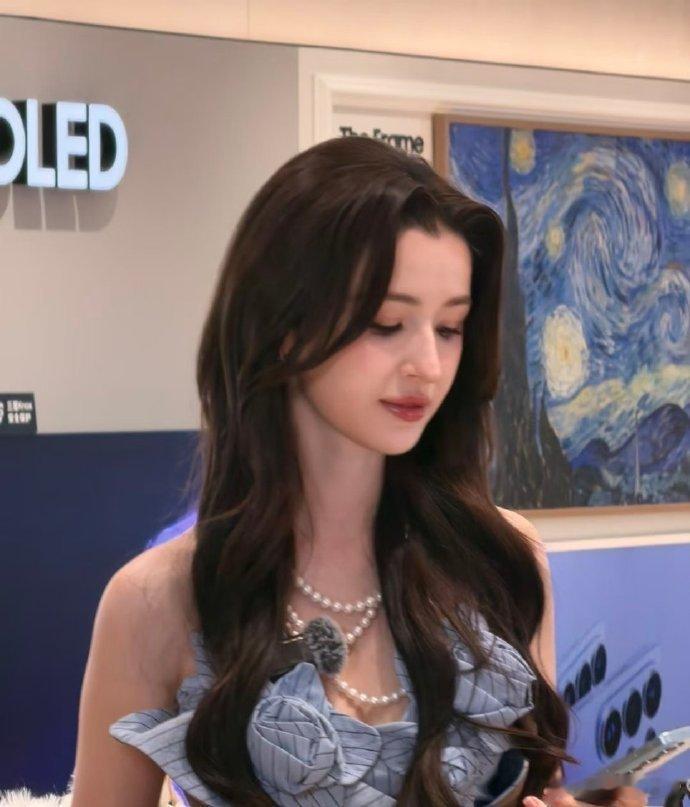 哈妮克孜线下人气线下真人颜值暴击!哈妮克孜这套造型真的封神,慵懒大波浪卷发搭配修身抹胸裙,珍珠项链加持尽显优雅气质。现场人气爆棚,前后全是赶来打卡的粉丝,生图完全扛住镜头,本人比精修还要好看,狠狠羡慕在场所有幸运儿。