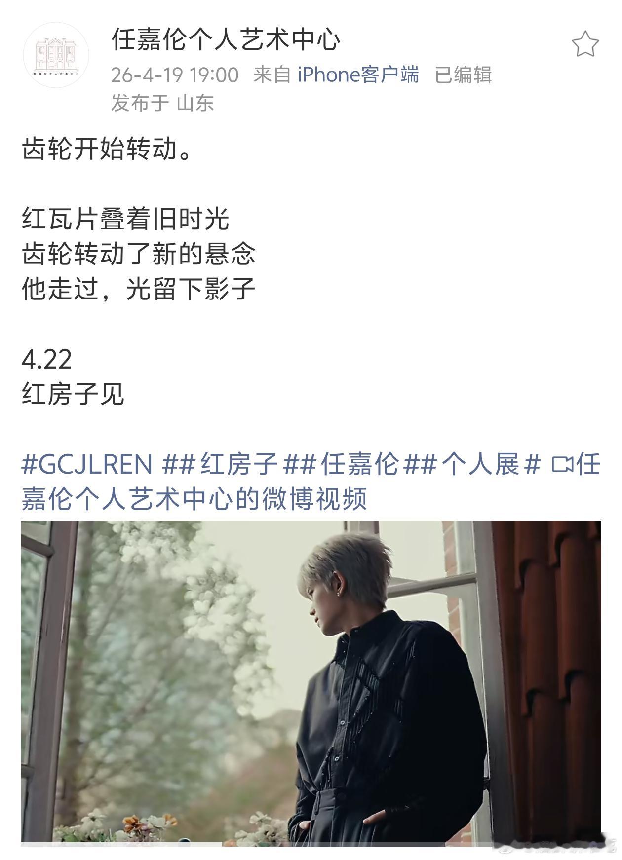 任嘉伦个人艺术中心预热红房子来了