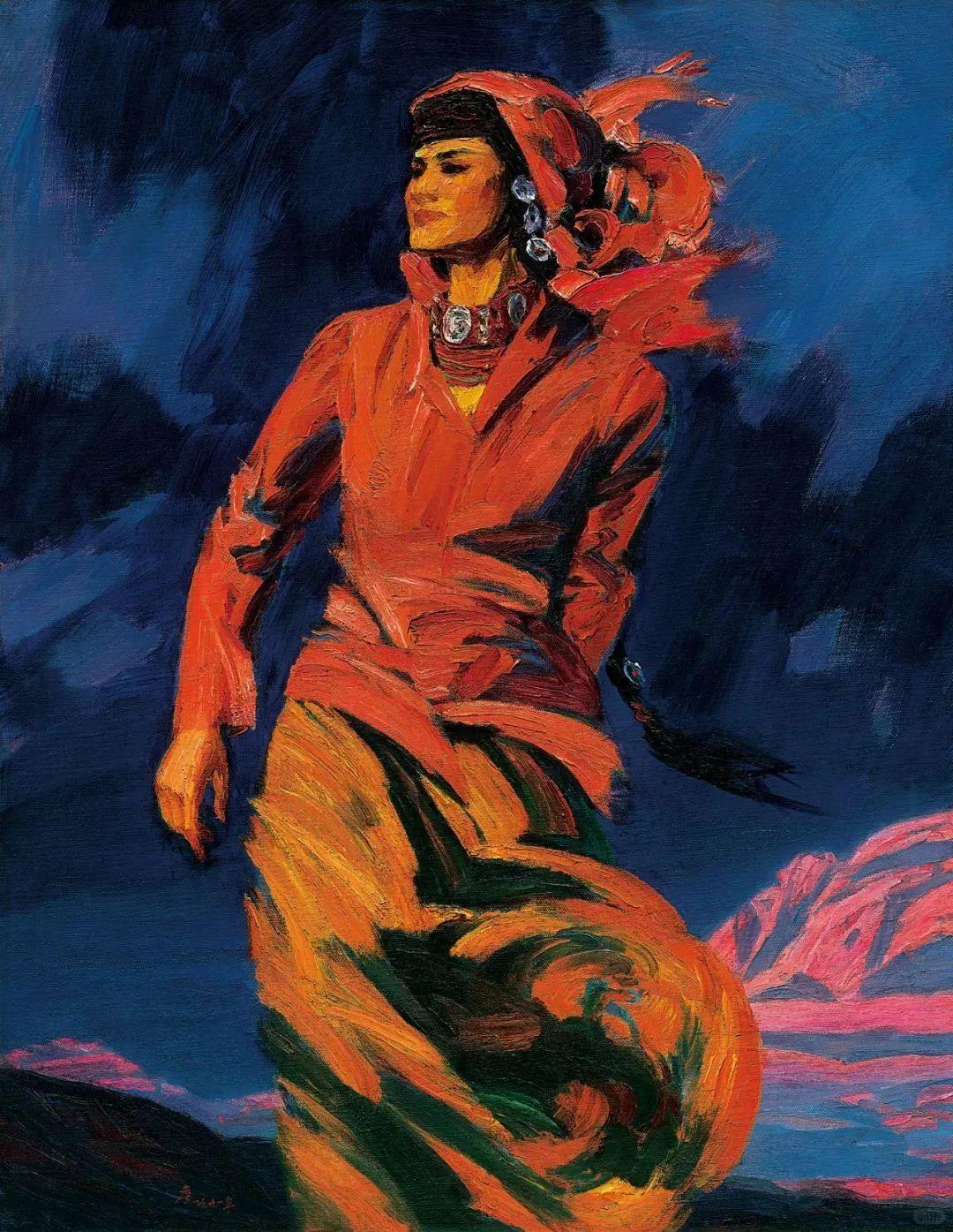 中国抒情浪漫主义油画的标杆人物,新中国油画民族化最核心的代表画家之一,当代油画泰斗詹建俊。 他深耕中西融合,将中国传统写意气韵、意象精神融入西方油画本体语言,打破苏派写实的桎梏。笔触雄浑奔放、肌理厚重强烈,色彩大胆浓烈、对比极致,构图富有纪念碑式力量感与抒情诗意,看似粗犷,实则舍弃琐碎写实细节,以形传神、以意造境。 从这些作品可以看到,浓郁的浪漫主义情怀,无论是西部民族人物、高原山河,还是旷野风景,都饱含着生命激情与诗意豪情,把西北大地的苍茫壮阔、民族人民的淳朴生命力化作精神抒情的表达。 詹建俊先生曾任中国美协副主席,中国油画学会创始人、原主席,中央美术学院教授、博导。他始终扎根中国本土文化与现实生活,既坚守油画纯正语言,又深度注入东方审美内核,完成了油画本土化、民族化的深度革新,是中国油画民族化道路里程碑式的开拓者。
