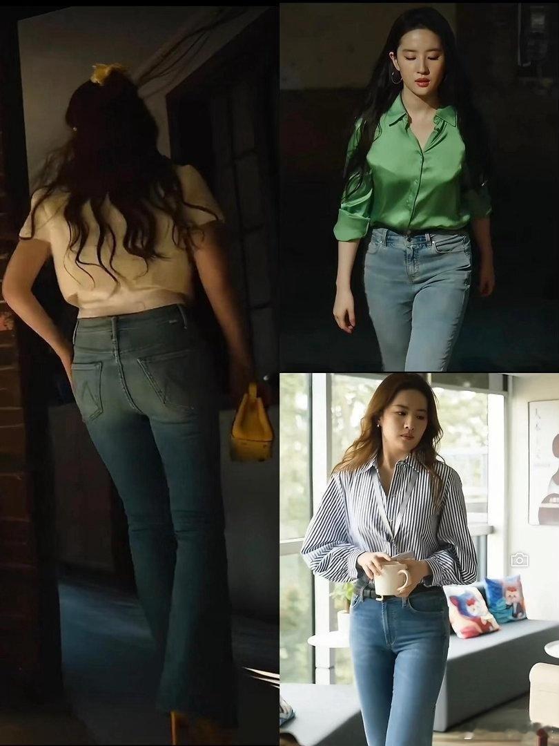 穿牛仔裤还是需要刘亦菲这样丰韵的身段才好看。