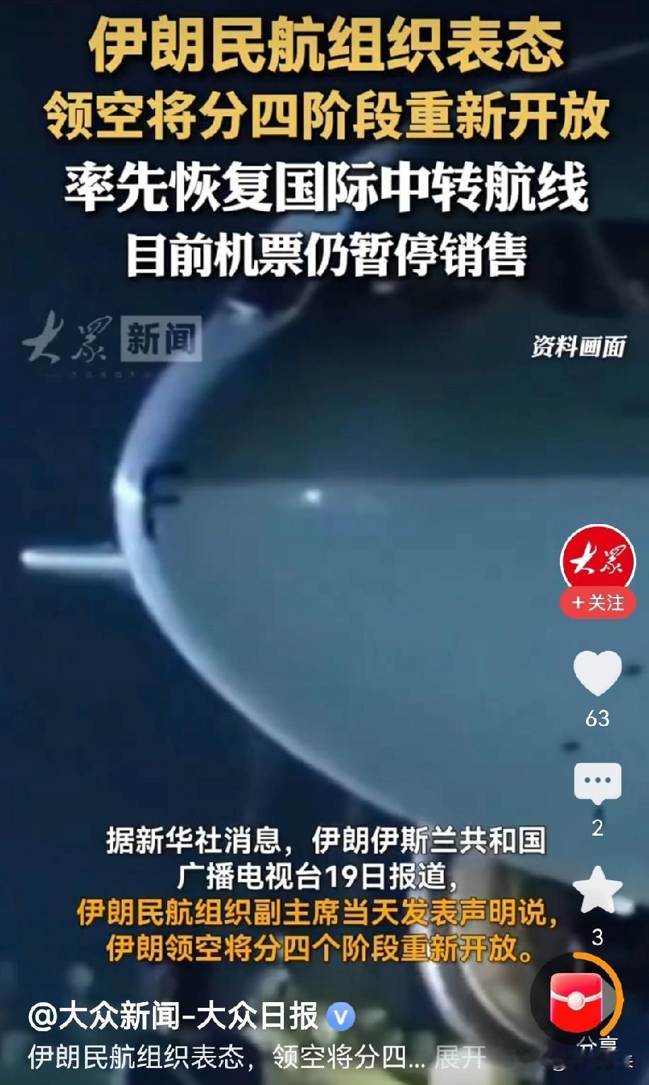 中东战争在慢慢的偃旗息鼓 双方都做好了不再打的准备! 伊朗首都德黑兰马什哈德机场的国际客运已获准20日恢复! 以色列国内机场也陆续开放! 伊朗由于机场受损严重,正在修复和分阶段开放! 中东形势往好的方面发展 不过战争随时会卷土重来! 小规模零散的冲突还会发生,大规模冲突很难再发生了! 毕竟打了一个多月,难分伯仲,美国也要及时止损了,再不止损美国就会陷入内外交困的局面! 美国无论从军事、经济还是外交方面,都没有得到任何好处! 虽然美国不甘心、以色列不死心,但是也不得不面对现实! 打两败俱伤,无尽深渊,握手言和吧!