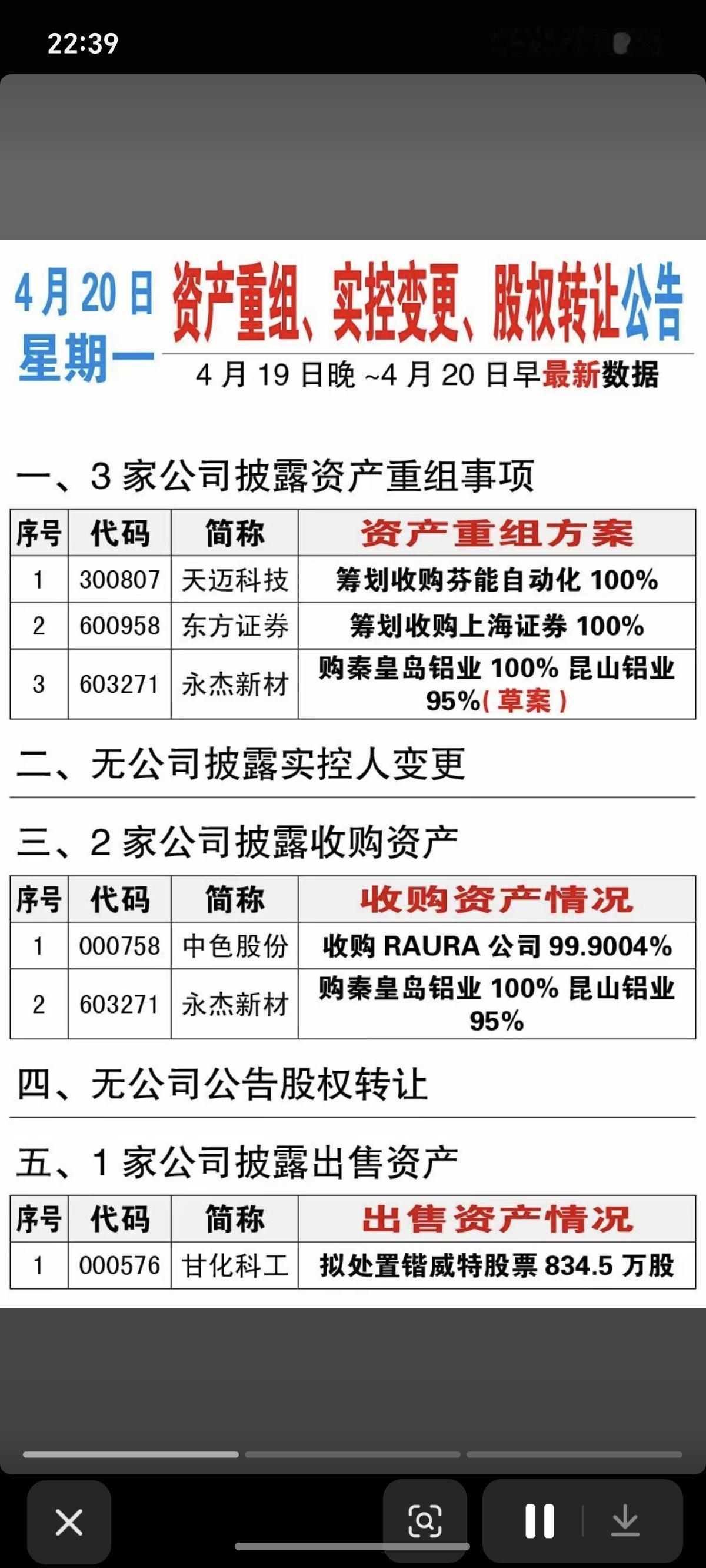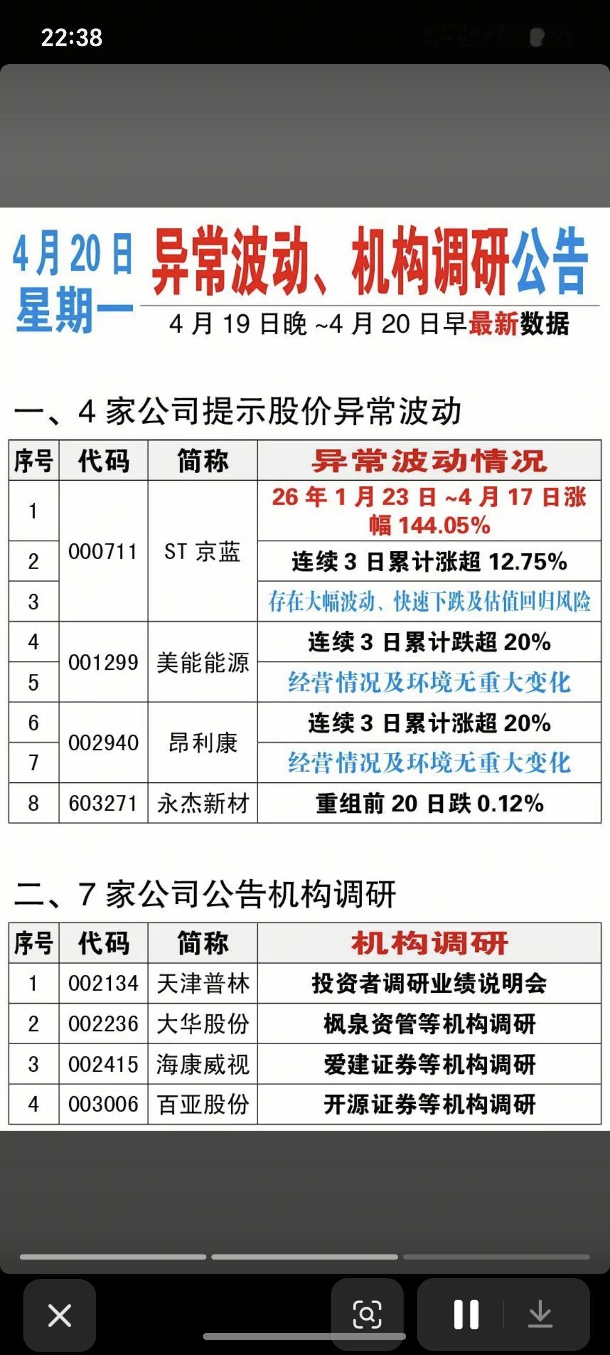 4.20周一 上市公司公告精选! 主要涉及:增持、减持、回购、股权转让、实控人变更、机构调研、股价异动、退市风险警示等