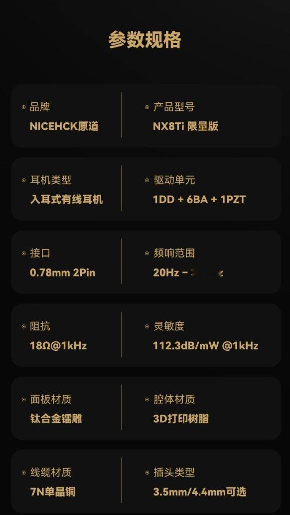 原道NX8Ti限量旗舰耳机来袭,堆料拉满质感出众NICEHCK原道NX8Ti限量版有线耳机正式发售啦!采用一圈六铁一压电八单元旗舰架构,搭配钛合金镭雕面板,出厂标配高纯度单晶铜升级线,不用额外折腾换线。声场开阔三频均衡,杂食百搭适配各类曲风,还是限量发售,外观质感和声学配置都拉满,原道这次高端旗舰诚意很足,发烧友可以重点关注~数码
