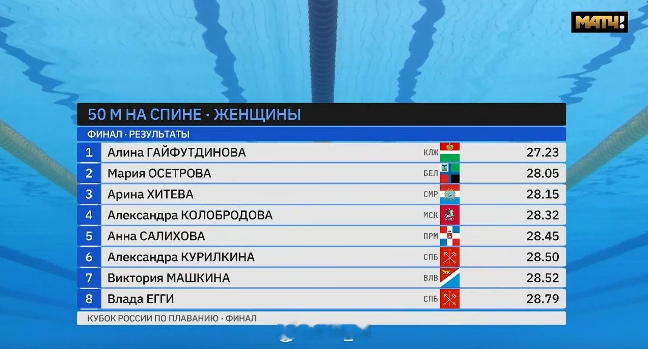 俄罗斯游泳杯总决赛 女50仰决赛Alina Gaifutdinova 27.23 =NR