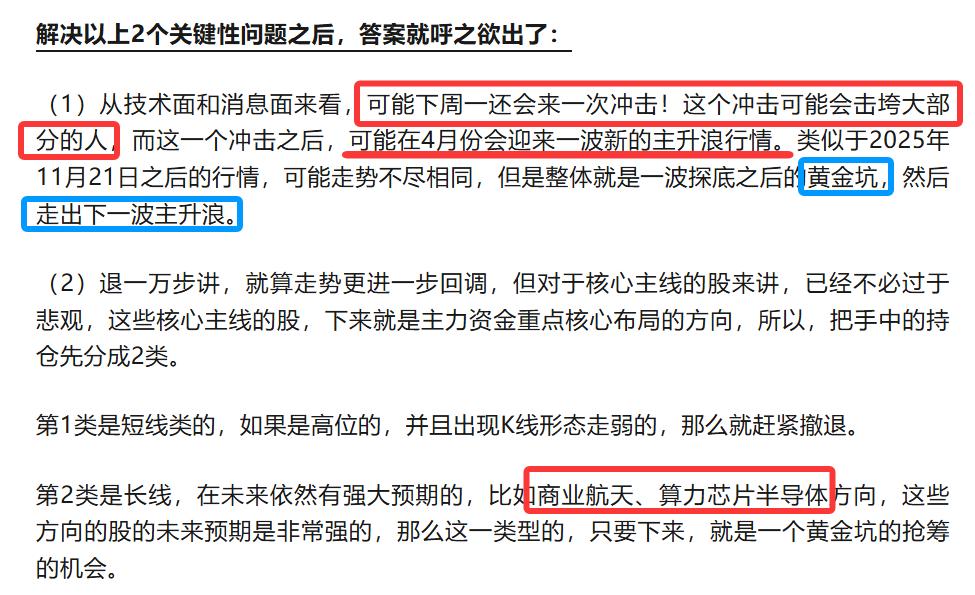 一、大趋势分析 二、假期利好 三、最热门的4个方向,逐一分析 1、光通信,光模块最缺的3样材料 2、PCB印制电路板,王者在M9新材料 3、AI电源 4、液冷,还没被人充分认识到的王者 四、最新消息——DS启动成立以来的首次外部融资 五、算力租赁三大梯队 六、商业航天,爆发的临界点越来越近 七、固态电池,下一个CPO 八、AI应用端 九、“超级铜箔”来了 十、光通信还可以从这个方向挖掘底部龙头 十一、如何成为真正的高手,如何在交易之中赚钱 免责声明:本文仅为个人学习日记,不作为任何推荐,不作为任何建议,盈亏自负。 一、大趋势分析 4月走出了一轮主升浪,这一波主升浪是由AI基建为主导拉升起来的,以CPO、存储芯片、算力、M9新材料等为领头羊,走出了一波难得的赚钱效应的机会,我很多次说了,这种赚钱效应的机会一定要抓住,这是账户快速起来的关键。 每一次危机都是一个次难得的机会!回顾这一波行情的判断,是能否做好的关键: 下周一怎么做?非常关键! 接下来行情会怎么样呢?是不是冲突结束了行情会更快?如果是这样想的,那基本上是做不好的。还是会到我3月22日时对行情的判断。 3月23日创出当时的低点,然后走出一波上升浪行情。 3月22日分析的时候我判断3月23日还会来一次冲击,而且这个冲击会击垮大部分人,当时我看到很多人的信心都被击垮了;当时预判了这一波的冲击之后就是黄金坑,然后会走出一波主升浪,并且预判了在4月会走出新的主升浪。从现在回顾去看,这些都说明了我当时的判断是极其精准的,以当时的市场环境和市场情绪,能做出这样的分析是非常难的。 那接下来的行情呢? 从周末的消息来看,一会说海峡开放了,一会又说海峡关闭了,总之是消息反复横跳,这里有一个关键的时间节点——“22日之前达成结束战争的长期协议”,所以尽管消息反复的横跳,但重点是22日的一个关键性的时间节点。 消息重不重要?前期一直说不要去管消息面,因为消息一直反复横跳;但现在不一样了!!这一波行情的启动,都是预期着冲突缓和的,如果没有涨起来,那么冲突的消息已经影响有限了,现在涨起来了,如果预期没有达到,那么可能反而就影响大了,所以接下来这个消息面就很关键了。 ①如果是冲突缓和,那么这一波行情还没结束,这一波行情是要破前高的,这种赚钱效应就要把握好。 ②如果是冲突进一步加剧,那么大概率行情要再来一波大幅回调,然后又是一波抄底的机会。 所以,策略就很关键了。 我的策略是继续保持底仓,我的底仓大概率保持在5-6成这样子,这是跟之前不一样的地方,然后用3-4成的仓位做每日的轮动,然后等消息落地: 如果是第①类消息,也就是谈下来签协议了,那么就可以不看指数了,轻指数重个股去把握住接下来的赚钱效应。 如果是第②类消息,也就是冲突加剧了,或者反复拉扯了,就是消息面继续反复横跳了,那么我会等跌2-3天,具体要看跌幅多少,然后抄底。如果出现这种情况,相当于再给一次机会。 二、假期利好 1、又有券商并购重组 4月份的这一轮行情行情上来,其实券商是缺席的,因为这一轮行情的上来,是令大部分人是猝不及防的,所以作为行情的旗手,券商是完全缺席了。那么接下来的消息面是很关键的,如果消息的结果是谈判好了签协议了,那么券商的行情可能就要启动了。 2、荣耀机器人打破人类半程马拉松世界纪录 机器人的催化其实还是比较少,反弹的概率比较大,因为毕竟调整得比较充分了,但一波比较大的行情比较小,因为目前并没有足够大的消息催化。从之前的消息来看,optimus的量产要等到2027年的年底,这一个时间等待太久了,而且从目前来看,也还没看到消息说机器人足够智能了。 什么时候能再起一波大行情呢? 第1,突发消息说机器人大脑有最新突破了。 第2,optimus开始量产了,按照之前的消息来看,要等到2027年。 第3,最新的突发的重磅消息,能产生业绩类型的。 3、国产光纤全球爆单,部分产品价格暴涨650% 其实这个消息在我们专业人来看,已经早就知道的事情了,之前我为什么一直强调核心主线是CPO、算力、存储芯片,因为我们对于产业链这一块的消息是很早就挖掘出来了。等媒体大幅报道的时候,基本上就是要出货的时候了,就是阶段性顶部的附近了,下周,可能还会一波冲高,然后就要套人了。 不管你现在信不信,过段时间就会明白我说的正确性。 4、厄尔尼诺效应 就是可能会出现比较极度的天气,网络上有说法称“140年以来最强级别的厄尔尼诺”可能要来了,今年地球可能冲击高温极限。每年夏天都要炒电力,因为夏天用电量都大增,如果今年出现地球可能冲击高温极限,那么用电量可能进一步大增,利好电力板块。