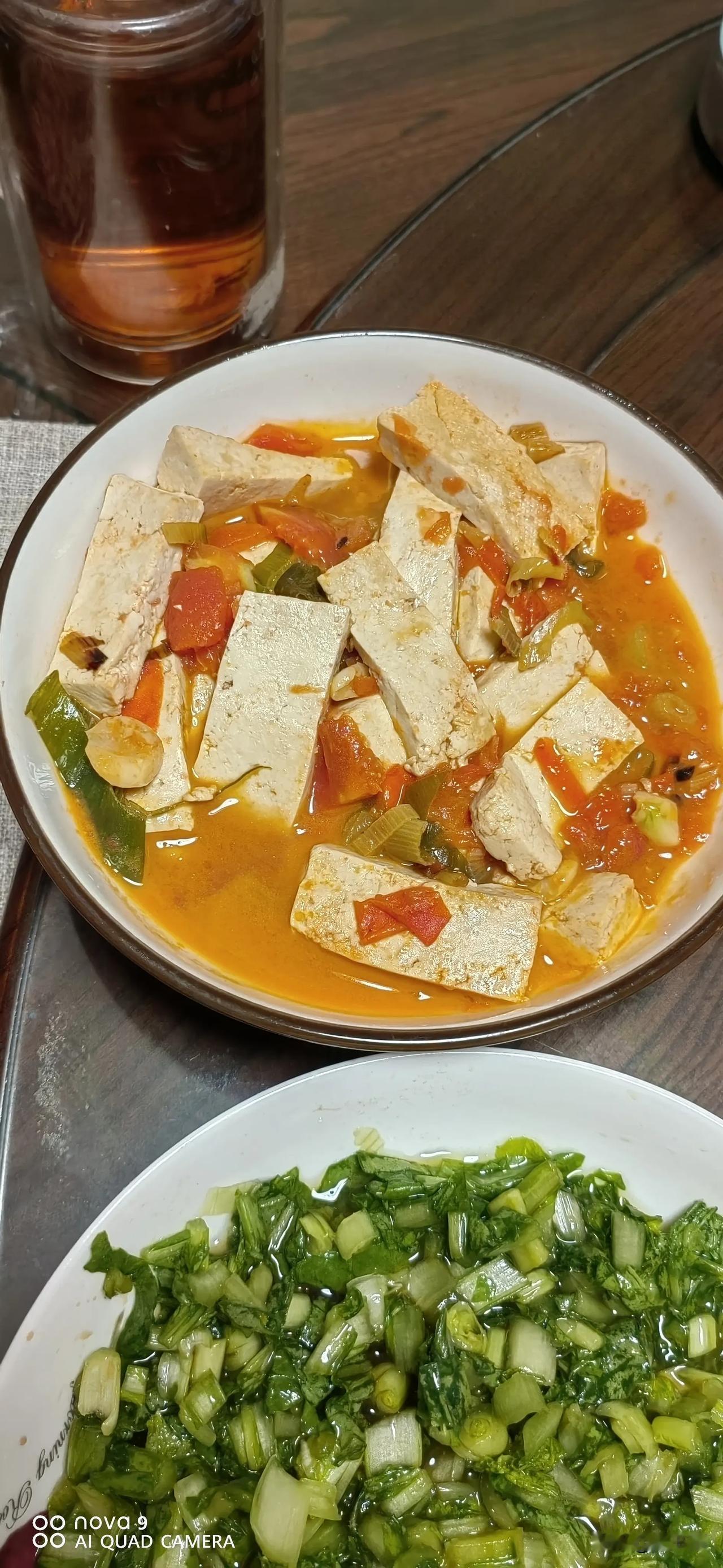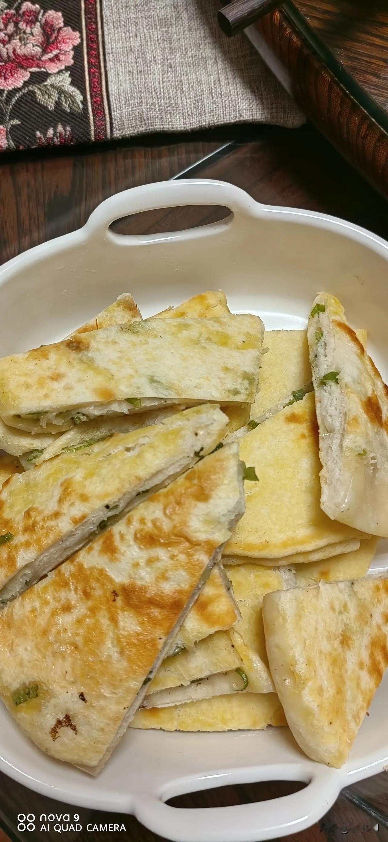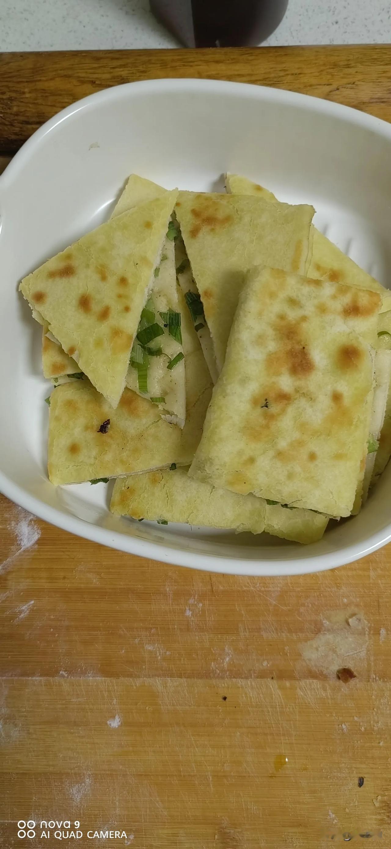 不知道什么原因,物价一夜间大涨,豆角10元,每天吃的西红柿都6元了,门口一家卖大葱饼一斤8.5元,年轻人排着长队买,闺女说想吃又不想排队,我说回家来,老妈给你做,说做就做:大葱剁碎加调料调香,挖两勺面粉,一半用热水和面一半用凉水和面,醒一会面后擀薄,均匀的撒葱花,喷油,一顿操作,黄金大饼成功上桌!炖个豆腐,腌个小菜,成本不高,吃的舒服,自己动手丰衣足食。