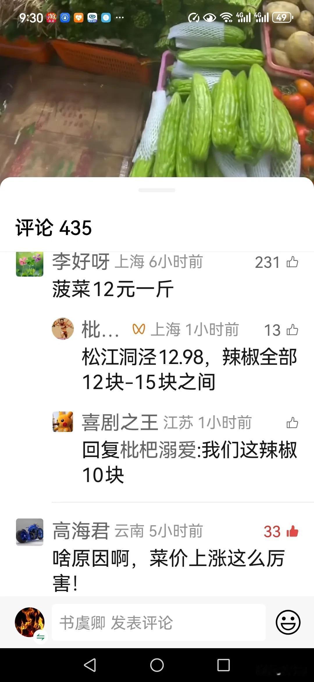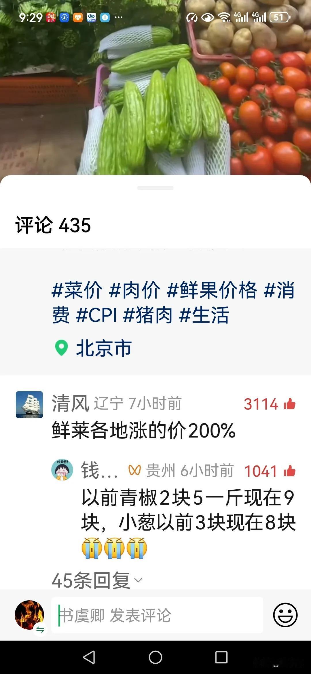 物价大涨,西红柿🍅8元,豆角15元,菠菜12元,西兰花10元,小芹菜10元,是菜农涨价了,还是中间商涨的价?我们又没打仗,又没遭灾,国泰民安啊,什么理由就大幅涨价,又是谁的刀,专从民众的生活用品下手?你们那的菜价涨到多少了?