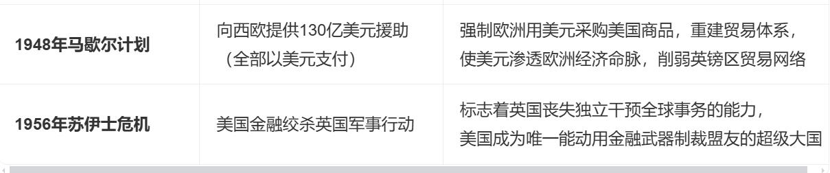 英帝国的霸权衰落是多重结构性危机长期累积的结果, 其终结并非一蹴而就,而是由经济、政治、军事与国际秩序剧变共同作用的系统性崩塌。 ✅英帝国衰落的四大核心动因 1、财政枯竭与战争消耗 两次世界大战彻底掏空了英国的经济根基。一战使英国从全球最大债权国沦为债务国,欠美国超80亿美元;二战期间,为维持战争机器,英国耗尽黄金储备,向美国输出20亿美元黄金,国家信用濒临崩溃。布尔战争(1899–1902)单次耗资2.2亿英镑,超过19世纪所有殖民战争总和,成为帝国财政的首次重大失血。 2、工业竞争力被超越 19世纪末,美国与德国完成第二次工业革命,钢铁、化工、电力等新兴领域全面超越英国。1894年美国GDP首次超越英国,至1913年,美国工业产值占全球36%,英国仅下降至14%。英国固守传统纺织与煤炭产业,未能及时转型,导致“世界工厂”地位被取代。 3、殖民体系瓦解与民族主义浪潮 二战后,全球反殖民运动高涨,印度独立(1947年)成为帝国解体的决定性节点。作为帝国“王冠上的明珠”,印度的脱离不仅意味着人口与资源的丧失,更象征着统治合法性的崩塌。此后,非洲、加勒比、东南亚殖民地相继独立,英国无力以武力维系控制。 4、国际秩序的权力转移 1956年苏伊士运河危机是霸权终结的仪式性时刻。当英国联合法国武力夺回运河控制权时,美国以金融手段“杀人诛心”:财政部抛售英镑、阻止IMF贷款,导致英镑汇率暴跌、外汇储备一周内蒸发10亿美元。英国被迫撤军,暴露其已无能力独立主导全球事务,彻底沦为美国附庸。 ✅霸权的继承者:美利坚治世(Pax Americana)的制度化确立 美国并非通过战争推翻英国,而是以金融、经济与制度手段完成和平接管,构建了比大英帝国更严密、更持久的全球霸权体系。 ✅关键结论:美国的霸权不是靠舰队,而是靠美元、债务与制度设计。它将英国的“殖民地+海军”模式,升级为“金融网络+多边机构+技术标准”的现代霸权形态。 ✅苏联的角色:超级大国,非全球霸权 苏联虽在军事与意识形态上与美国并驾齐驱,但从未建立全球性霸权体系:缺乏可替代美元的国际货币;经济封闭,未融入全球贸易体系;殖民地影响力仅限于东欧卫星国,无法复制英国的全球网络;其“阵营对抗”模式本质是区域霸权,而非普世秩序构建者。因此,苏联是冷战对手,而非霸权继承者。 ✅英帝国的遗产:英联邦与软实力的延续 尽管政治霸权终结,英国仍通过制度性软实力维持全球影响力: 英联邦:53个主权国家组成的松散联盟,涵盖全球30%人口,25%国际贸易。印度、加拿大、澳大利亚等国虽为共和国,仍保留英联邦成员身份,共享法律体系、议会制度与英语教育网络。 语言与文化:全球17亿人使用英语,联合国、国际法院、国际奥委会等核心机构以英语为工作语言。 金融与法律:伦敦仍是全球第二大金融中心,国际仲裁、普通法体系、保险与再保险市场仍以英国规则为基准。 教育与科技:牛津、剑桥、帝国理工等高校持续输出全球精英,英国在人工智能、生物医药、金融监管等领域仍具标准制定权。