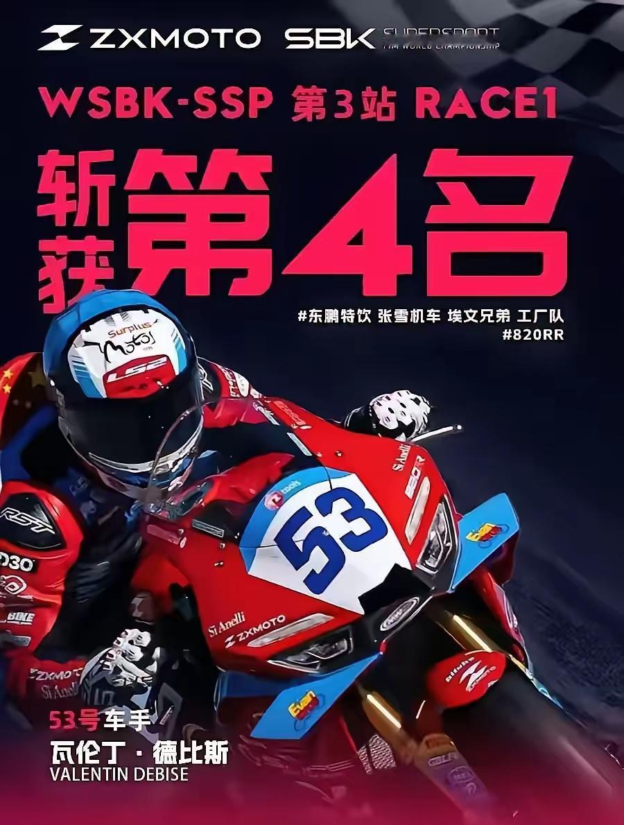 张雪机车荷兰站拿第四,虽憾犹荣。 谁也没想到,刚拿下WSBK葡萄牙站双冠的张雪机车,在荷兰阿森赛道迎来了最惊险的一战。4月18日,WorldSSP组别首回合正赛落幕,53号车手德比斯驾驶ZXMOTO 820RR-RS赛车,在全场围剿中一度领跑,最终冲线时位列第三,却因最后一圈压线被罚,以第四名憾失领奖台。 这场比赛有多难?赛事BOP规则给张雪机车额外增重7公斤、削减5%动力,相当于带着枷锁跟对手赛跑;再加上阿森赛道高速弯道的残酷考验,德比斯从发车就被围追堵截,却硬生生在缠斗中杀回第一梯队,多次刷新单圈速度。其中,眼尖的观众还看到有人故意伸腿干扰,你看到了吗? 虽无缘领奖台,但这第四名含金量十足。它不是一次失败,而是中国机车在顶级赛场的又一次硬核突围。当五星红旗在世界顶级摩托赛事的赛道上闪耀,没人再敢轻视这个来自中国的名字。 下一站意大利,期待张雪机车卸下枷锁,把属于中国的领奖台,从“遗憾”变成“预定”!