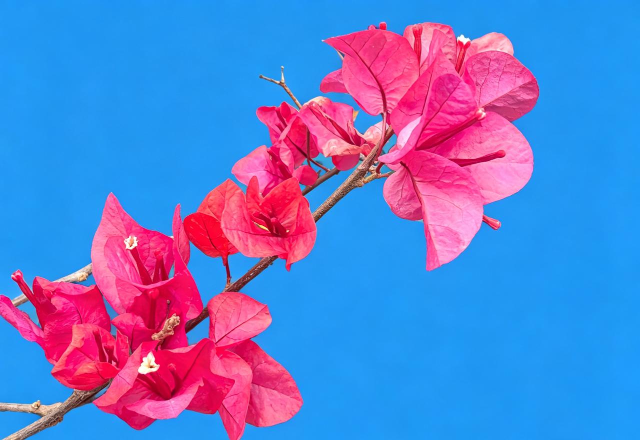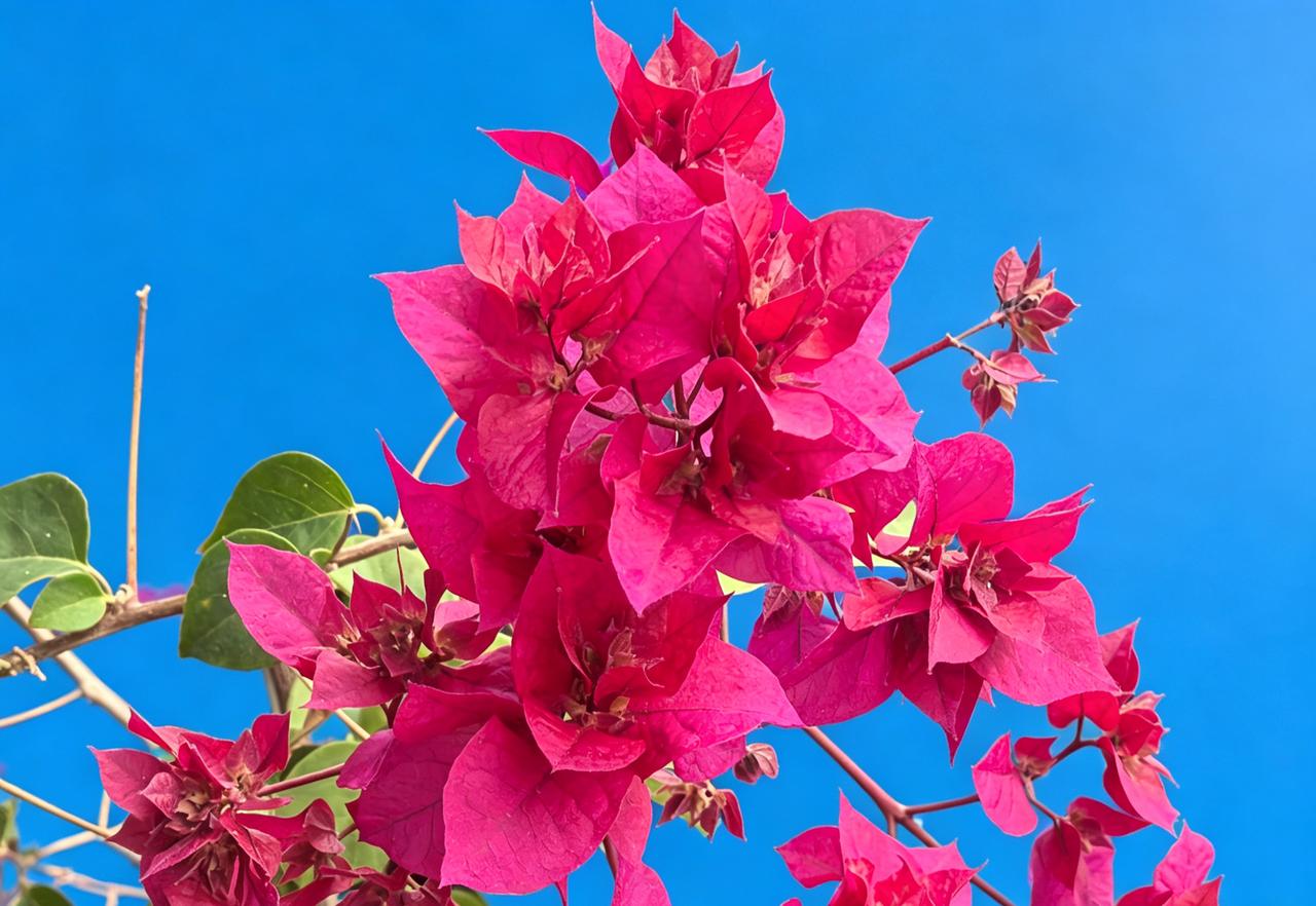 粉嫩的花朵在蓝天下绽放,美不胜收!🌸🌞