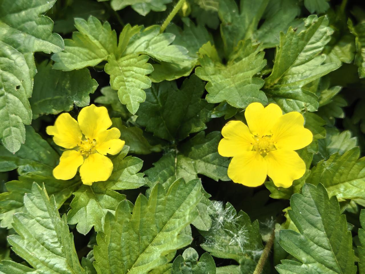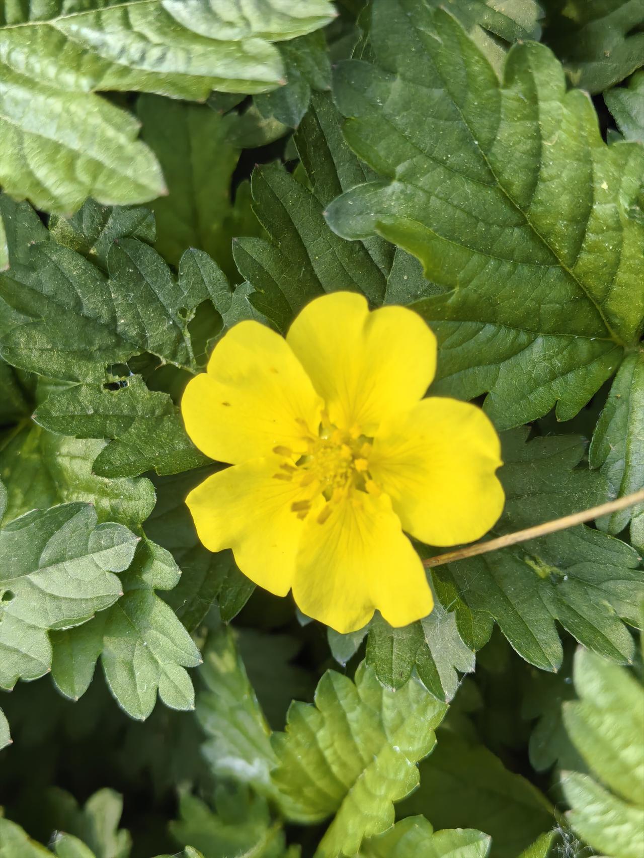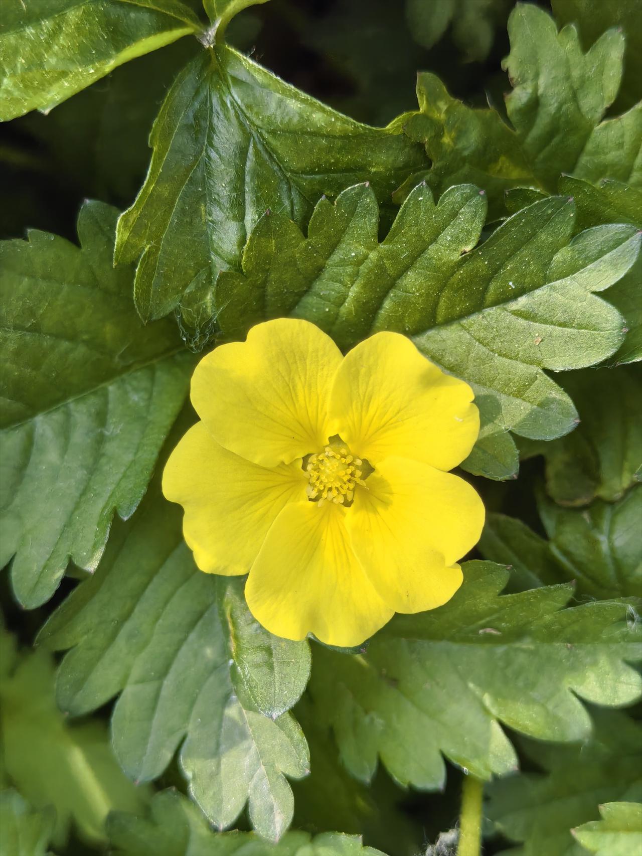 在平谷悦景公园东门口草地上有一种绿油油的花草,已结出金黄色的小花朵,听说它叫“绢毛匍匐委陵菜”。 绢毛匍匐委陵菜是蔷薇科委陵菜属的多年生匍匐草本植物,常被叫做金金棒、五爪龙。它贴地生长,开着鲜亮的5瓣黄色小花,花心像迷你玫瑰,叶片常为三出掌状复叶,下面密被绢状柔毛。 通常4-9月是它的花果期,黄色小花密铺地面,像撒了一地星星✨。” 绢毛匍匐委陵菜以匍匐姿态点缀春日草地,彰显灵动的美。