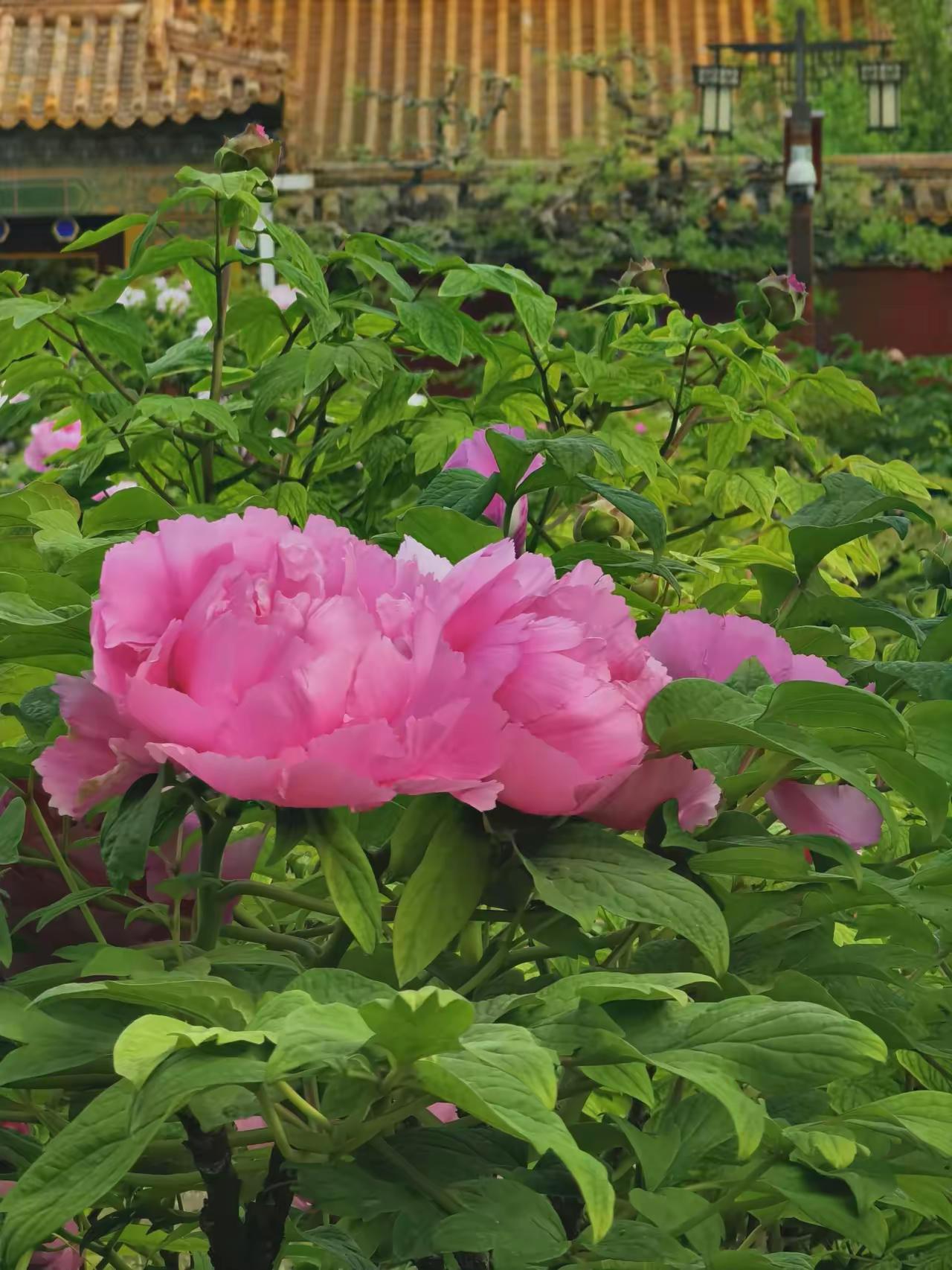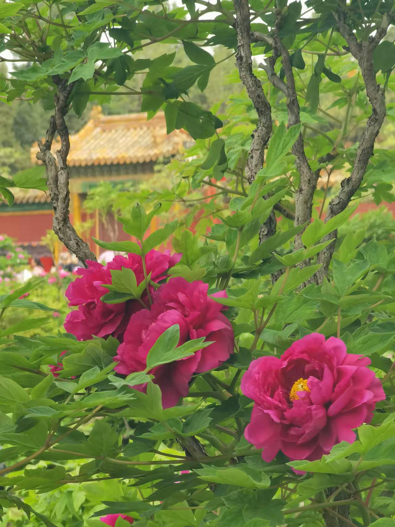 景山红墙金瓦映牡丹,富贵典雅正当时!万春亭下国色香,古建花影绝配,随手一拍都是大