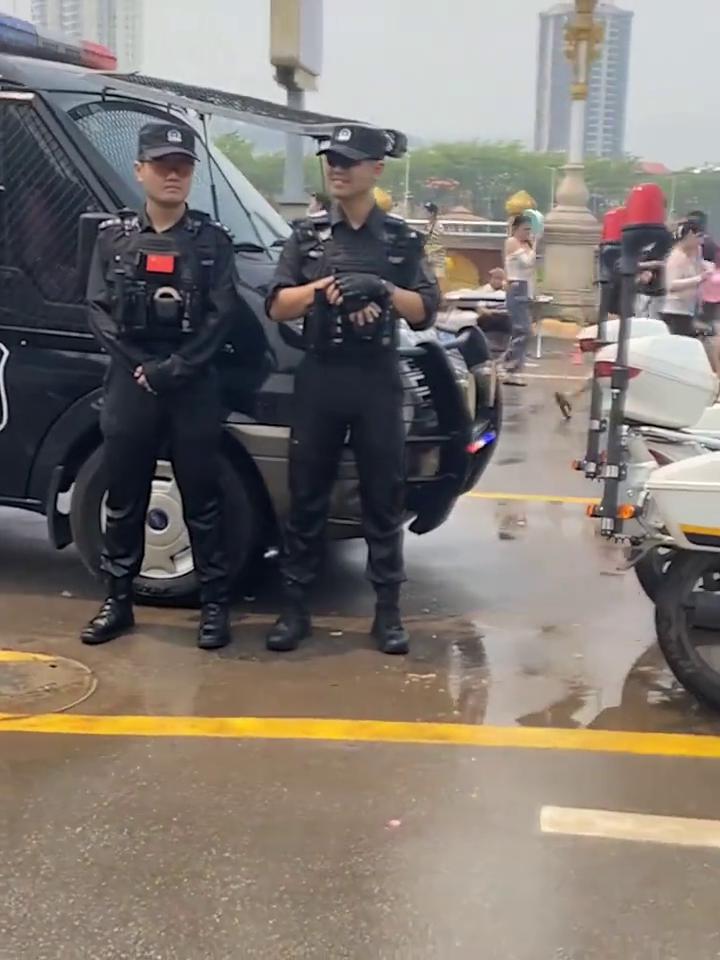 女子参加泼水节,征得特警同意再开泼,可以泼你们一下吗? 4月15日云南西双版纳。网友:快乐直接拉满。