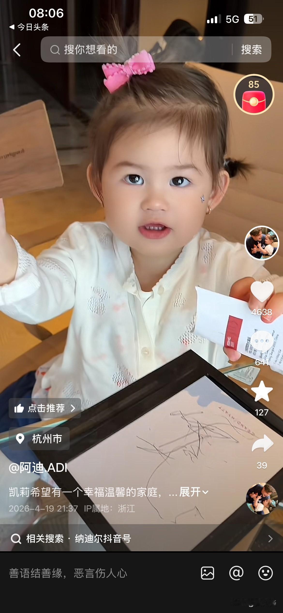 20260420 阿迪在陪凯莉玩,也许这是他以后的主要工作。 阿迪说凯莉需要一个温暖的家。哎,这迟到的觉悟是需要加倍努力才能重新得到。 嘴上天天说爱没用,说孩子需要没用,现在需要的是自己的深刻认识和自食其力。但是,对他来说,这不是一朝一夕就能解决的,因为,他一直觉得他很正确。也许是自带的大男子主义在作怪,也许是自身认识有问题。总之,他不具备回归的条件。 况且,现在公主在气头上,这一切结果是他毅然离去造成的,没有他硬要回家,哪来的小男友?他现在想回归,可能吗? 好好安心看孩子吧,这是他目前唯一能做的。 阿迪新恋情 阿迪金句 阿迪凯丽 阿迪凯丽盈公主 凯莉宝宝