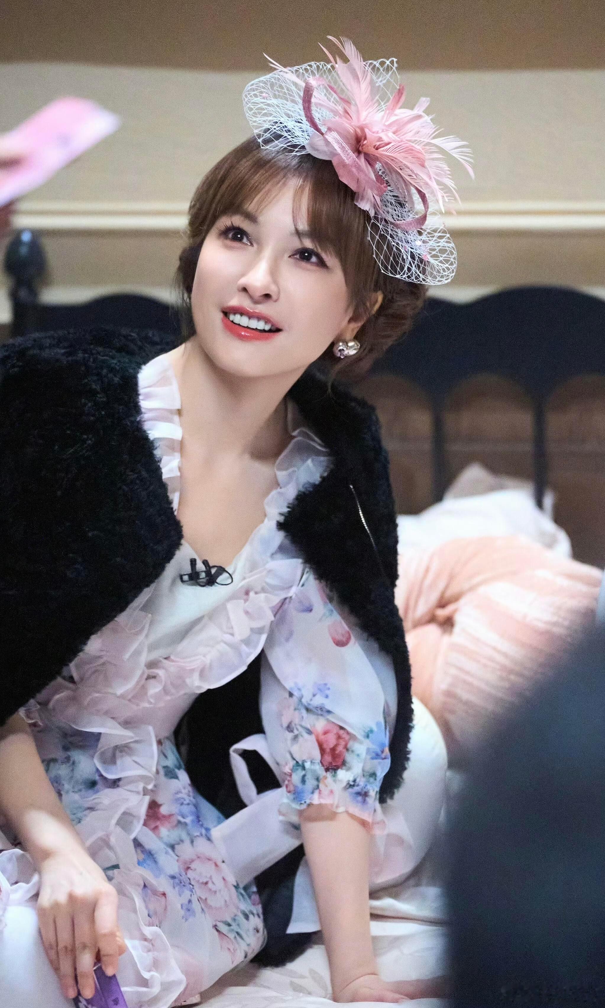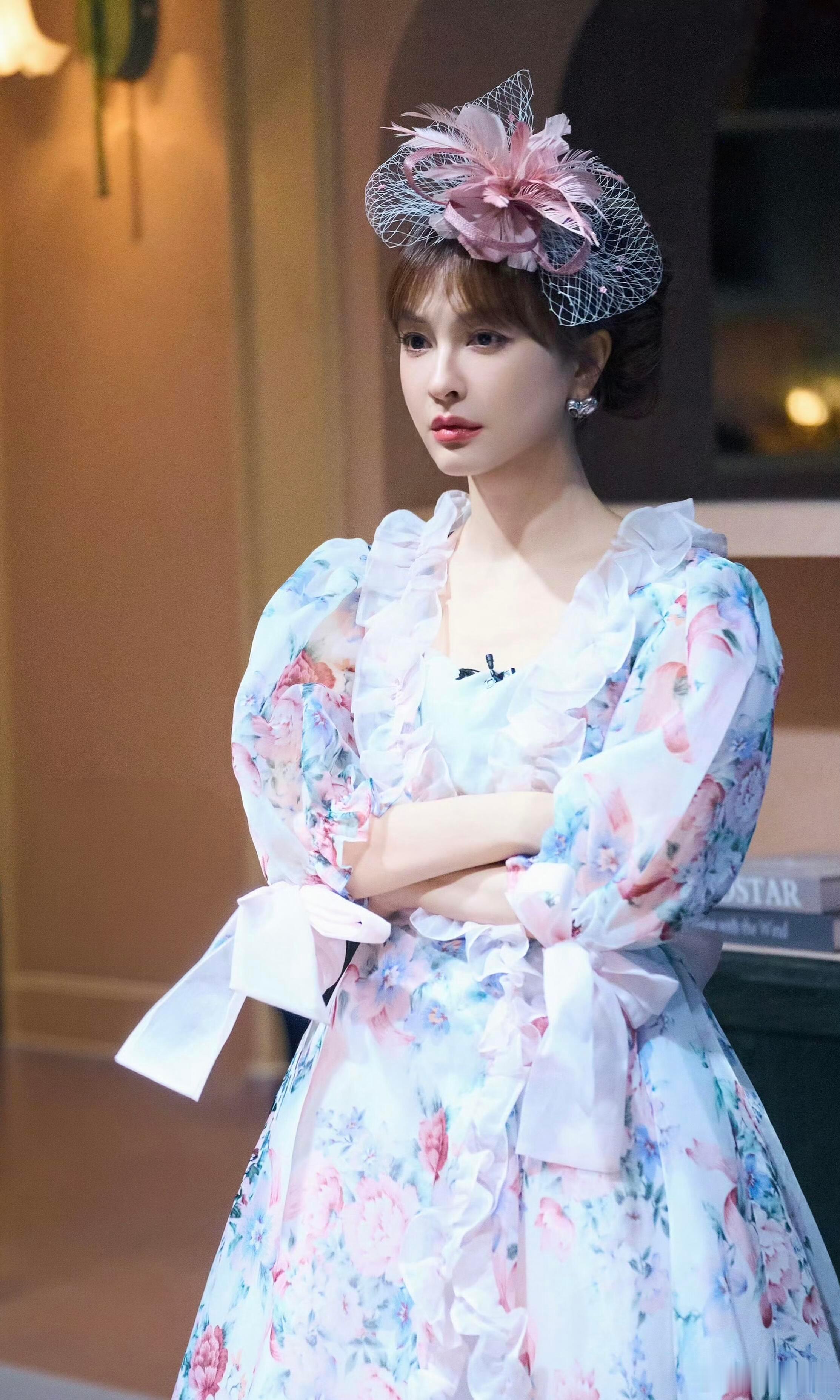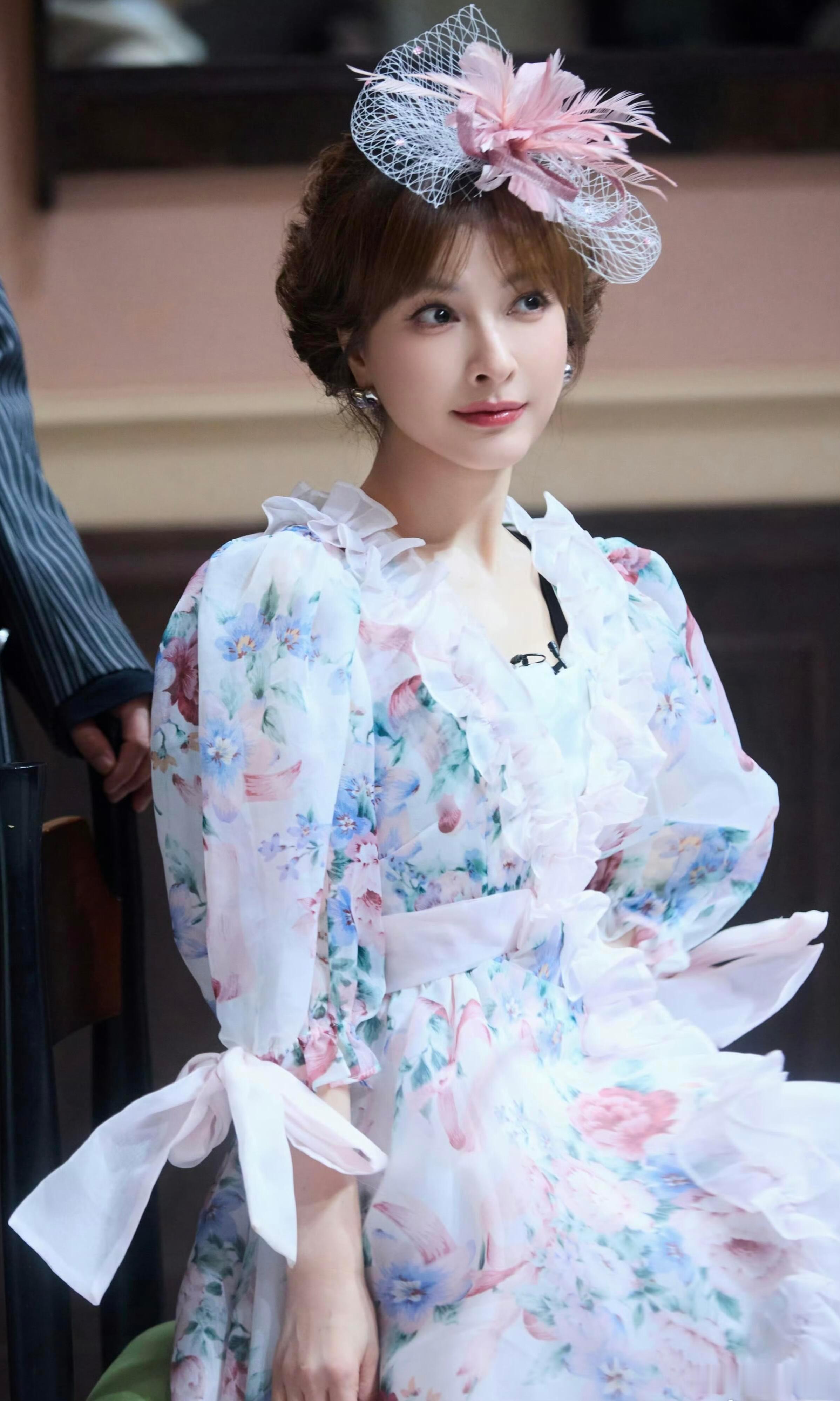 粉白碎花+网纱礼帽,吴昕这混血感绝了!气质沉淀下来,越来越有味道了