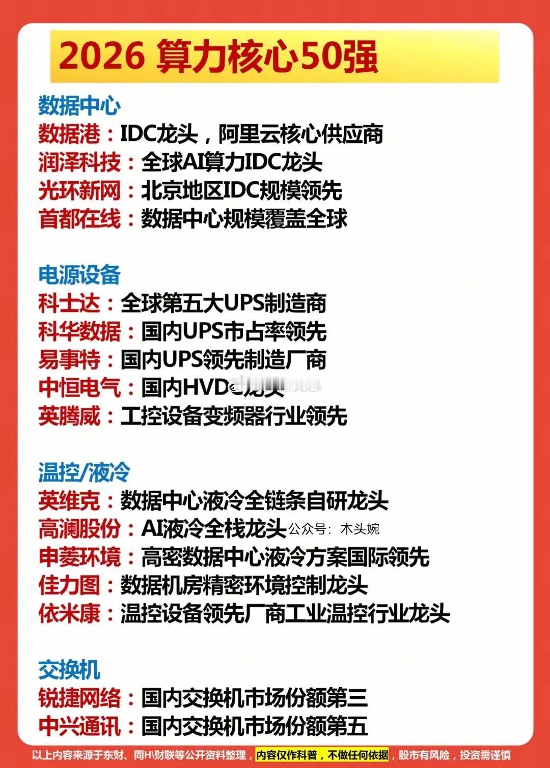 算力主线行情风起云涌,这篇2026算力核心50强名单,直接把光模块、算力芯片、服务器、数据中心等全产业链龙头一网打尽,值得收藏!