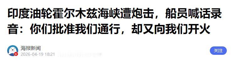 莫迪万万没想到,伊朗敢如此“羞辱”印度!中美俄都保持沉默! 说起来,伊朗军方还挺有意思的:对他们好的国家,他们感念于心;但对于一些跟他们耍心眼的国家,伊朗也是有仇报仇、有怨报怨。比如对印度,伊朗这一次就完全没手下留情。 4月18号当天,有两艘印度的船,要从霍尔木兹海峡过。霍尔木兹海峡是全球重要的石油通道,很多国家的船都要从这过,当天附近海域也滞留了不少船,大家都等着通行。 可谁也没料到,伊朗革命卫队直接对这两艘印度船开了火。其中一艘船的船长急了,赶紧通过无线电对伊朗革命卫队喊话:“我们是圣马先驱号!你们给了我们通行许可证,我们排在列表第二的位置,你们说我们可以离开,但是你们现在却对我们开火!” 这话听得出来,印度船员也很委屈,他们觉得自己手续齐全,没做错什么,怎么就被开火了。可伊朗根本不管这些,就是要开火警告他们。 更明显的是,当天不止印度这两艘船想过海峡,据美媒当天的报道,一共有20多艘船尝试通过,最后都成功掉头回去了。这么多船,伊朗不打别的,偏偏盯着印度的船打,这绝对不是巧合,就是他们精心挑选的。 其实这事也不能全怪伊朗,印度人心里其实比谁都清楚,自己为啥会被针对。这些年印度的操作,早就把伊朗得罪透了,这次就是伊朗算总账的时候。 伊朗以前是印度前三大石油供应国,印度一直能拿到伊朗的廉价石油,缓解自己国内的能源危机。可印度一边占着伊朗的便宜,一边又偷偷抱美国和以色列的大腿,这换谁都得生气。 莫迪上台之后,一门心思讨好美国和以色列,访问以色列的时候,居然公开说两国是“父国母国”,这明摆着就是站到了伊朗的对立面。要知道,以色列可是伊朗的死对头,印度这么做,相当于直接打伊朗的脸。 而且之前美以联合对伊朗动武,造成伊朗不少军政高层伤亡,这么大的事,印度连一句谴责的话都不敢说,还摆出中立偏美以的态度。 更过分的是,今年2月份,印度还扣押了三艘和伊朗有关的油轮,说是这些船非法转运石油,其实就是配合美国对伊朗的制裁。 还有更关键的一点,4月17号的时候,伊朗刚宣布有条件开放霍尔木兹海峡,核心要求就是美国放松对伊朗港口的封锁,解除部分能源制裁。可伊朗这边刚松口,美国就变卦了,不仅没松绑,还拉着盟友强化拦截,扣押了三艘载有伊朗原油的油轮。 伊朗本来就一肚子火,正想找个对象立威,警告那些站队美国的国家。而印度刚好撞在了枪口上,一边想薅伊朗石油的羊毛,一边又帮着美国打压伊朗,伊朗不打印度打印谁? 这事发生之后,最让人意外的是中美俄这三个大国,居然全都保持沉默,没有一个站出来说话。其实这也不难理解,都是从自己的利益出发。 美国这边,本来就想打压伊朗,看到伊朗和印度闹矛盾,正好坐收渔利,自然不会插手。 俄罗斯虽然和印度有军事合作,但也不想得罪伊朗,毕竟伊朗在中东的影响力不小,没必要为了印度破坏和伊朗的关系。 中国一直坚持不干涉他国内政,这种地区之间的矛盾,肯定不会轻易表态,还是希望双方通过协商解决。 再看看印度,被打了之后也只能嘴上硬气。印度外交部紧急召见了伊朗驻印大使,又是抗议又是要求解释,说自己的船享有无害通过权。可实际上,印度根本不敢和伊朗撕破脸。 其实主要的原因还是印度85%以上的原油都靠进口,其中近一半的石油运输都得走霍尔木兹海峡。要是伊朗真的彻底封锁海峡,印度的能源就会彻底断供。 而且印度的战略石油储备少得可怜,理论上只能撑9.5天,实际储量还不到理论的六成,真要是断供,撑不过6天。 现在印度国内的能源危机已经很严重了,3月份天然气发电量直接砍了快一半,浦那市18座燃气火葬场全部关停,家属只能用木柴土法火化,超市里的电磁炉、电饭煲都被抢空,销量涨了30倍。 莫迪政府本来想趁着伊朗开放海峡的机会,多抢运点石油缓解国内危机,没想到偷鸡不成蚀把米,被伊朗直接开火警告。这一下,印度的能源危机更严重了,莫迪的支持率也跟着往下掉。 说来说去,这都是印度自己找的。莫迪一直想圆自己的大国梦,到处买军火、搞外交秀,却把最核心的能源安全抛在脑后。一边想两边讨好、两边占便宜,一边又没有足够的实力支撑自己的野心,最后只能落得个被“羞辱”的下场。 伊朗这次打印度的船,就是要告诉所有国家,别想着在伊朗眼皮底下占便宜,更别想着一边拿伊朗的好处,一边帮着伊朗的敌人。 现在霍尔木兹海峡的局势还在紧张,伊朗已经调了更多军舰和导弹过来,再次警告所有船只必须遵守伊朗的规定。 而莫迪政府现在也陷入了两难,继续抱紧美国和以色列,伊朗肯定会升级反制,印度的能源就彻底没保障;转头修复和伊朗的关系,又会得罪美国和以色列,之前的投入也都打了水漂。