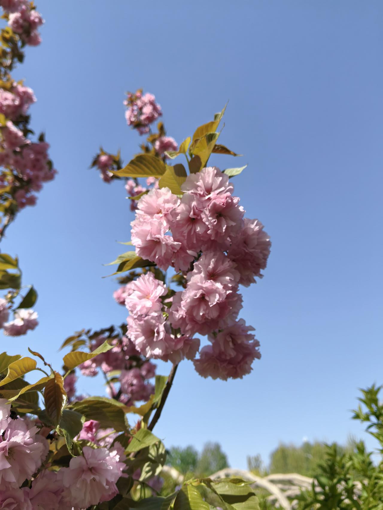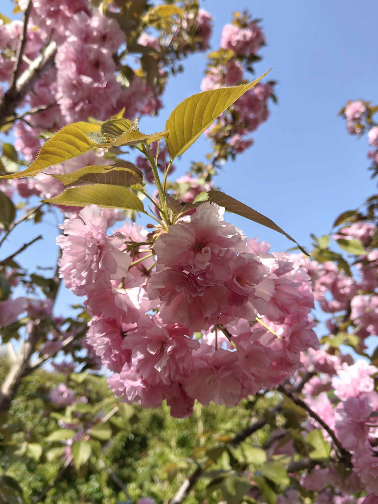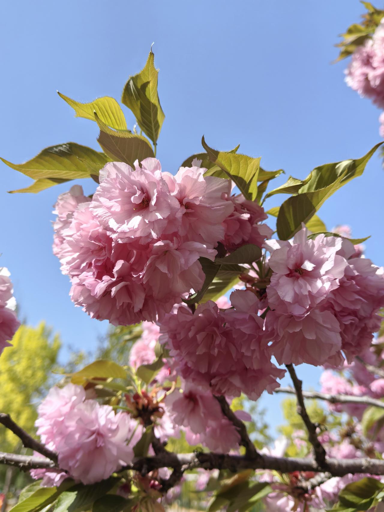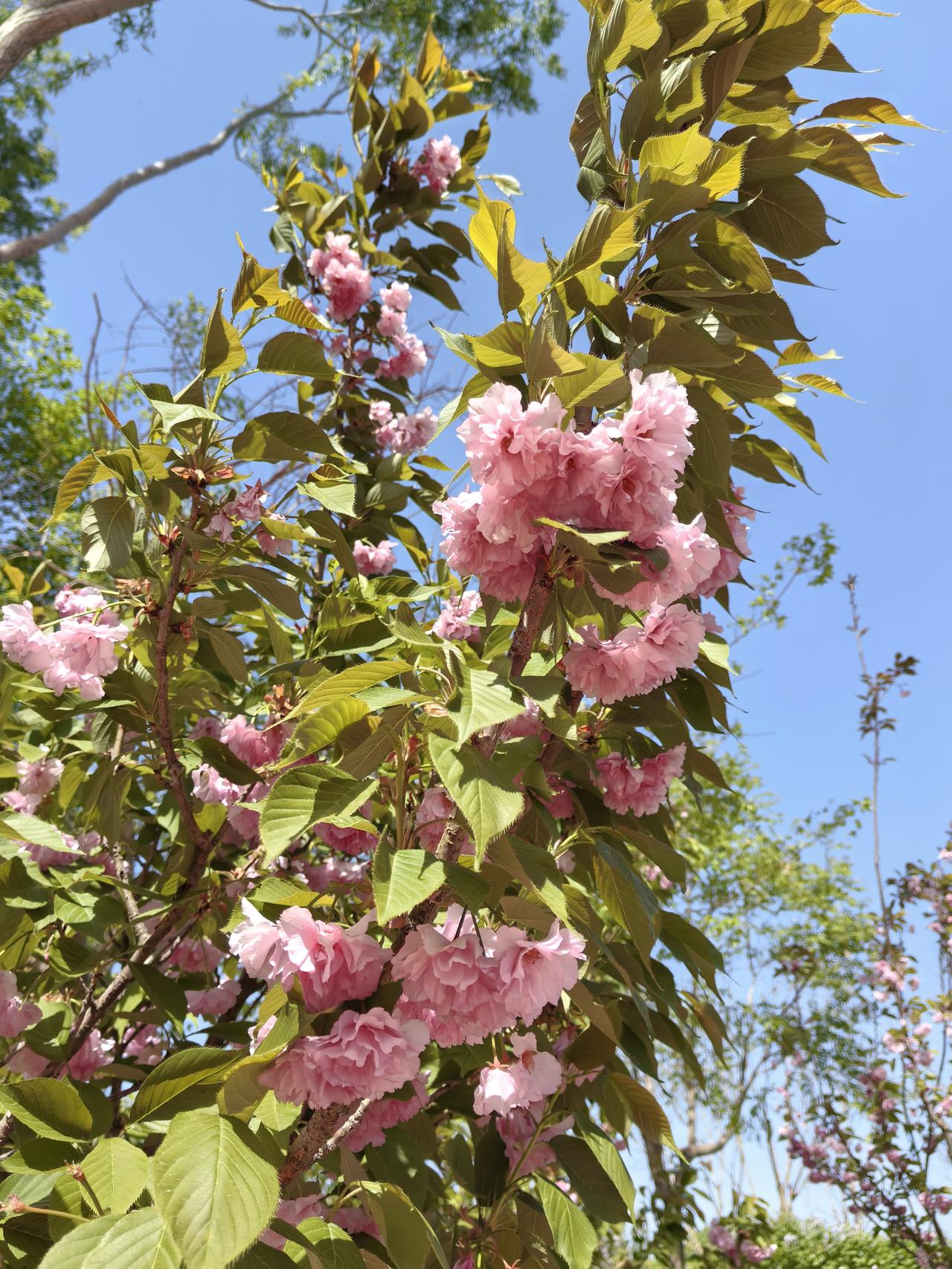 您对晚樱怎么看待? 晚樱是我非常喜欢的一种花,它跟早樱很不一样。早樱花期短,开得特别热烈,而晚樱来得晚,但开得特别饱满,花瓣层层叠叠,看起来特别优雅。而且,晚樱里还有像“御衣黄”和“郁金”这样的绿色樱花品种,颜色清新又独特,自带一种高级的自然感,非常耐看。它不像其他花那么急着争春,而是静静等待,用最美的姿态诠释着“迟来的浪漫”,那种从容和耐心,让人看了心里特别舒服。 ~照片拍摄于平谷悦景公园