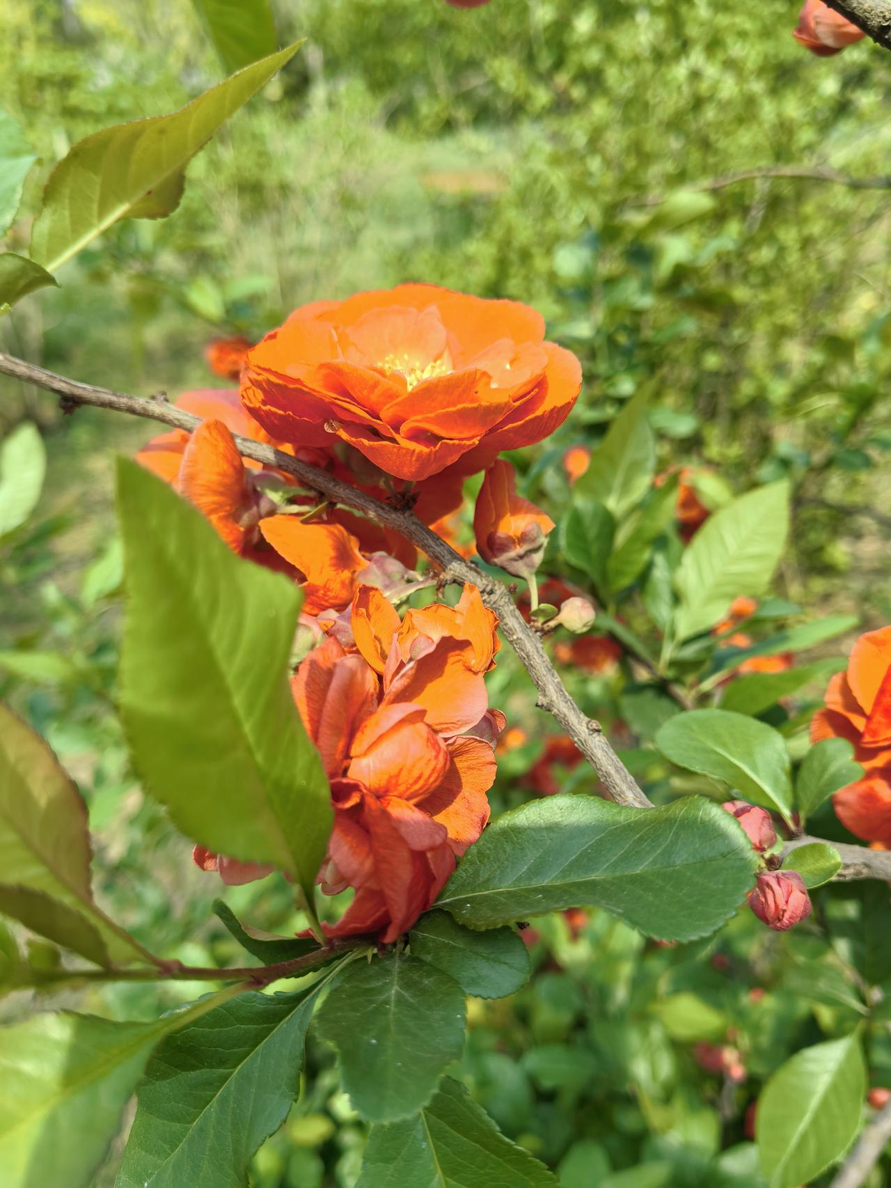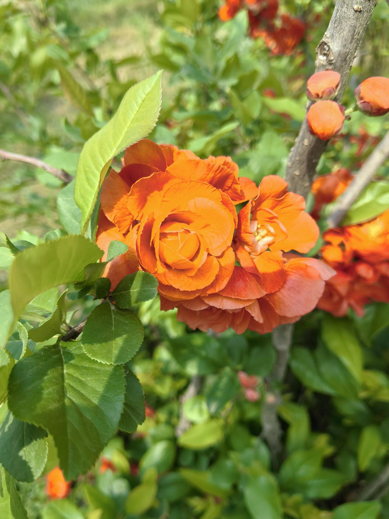 昨天我拍了几张照片不太确定是不是贴梗海棠,这不今天我又去看了一下,确实是贴梗海棠,红色白色的都是。贴梗海棠好看吗? 好看呀!贴梗海棠的花朵特别有特点,它的花梗很短,花几乎是贴在枝干上开的,显得格外繁茂。而且它的花色很丰富,有红、粉、白等多种颜色,看起来热烈又喜庆。