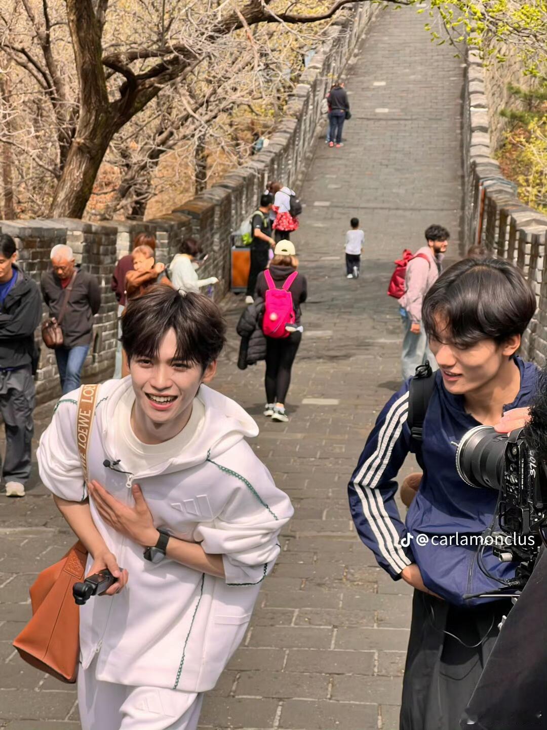 国外网友长城偶遇梓渝 梓渝简直是男大有没有!满满的青春活力感啊春天最后一个节气-