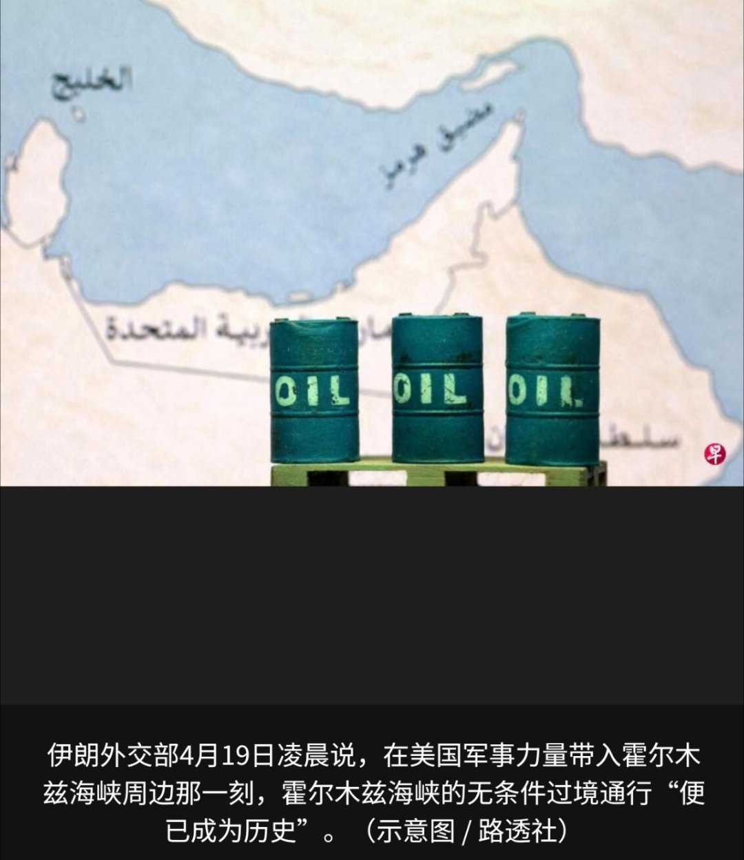 由于霍尔木兹海峡航运依然受阻,加上美国与伊朗第二轮谈判前景不明,市场避险需求再次升高,国际油价星期天(4月19日)晚些时候在新一周交易开始时大幅上涨。