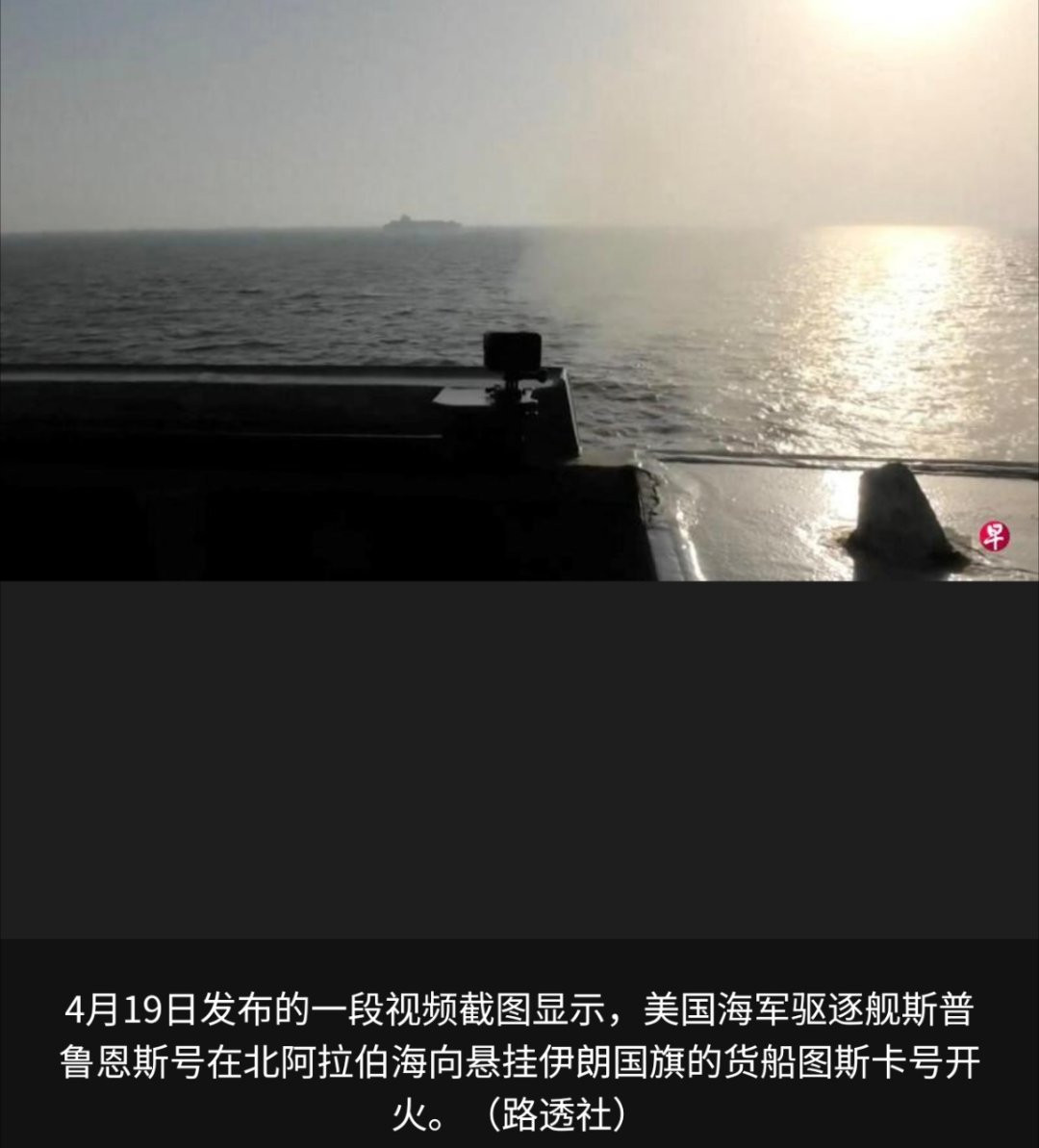 伊朗光明通讯社星期一凌晨报道,伊朗武装部队哈塔姆安比亚中央总部(Khatam al-Anbiya)发言人说,美军19日在阿曼湾海域袭击一艘伊朗集装箱货船,伊朗武装部队随后发射多架无人机,打击数艘美方军舰。