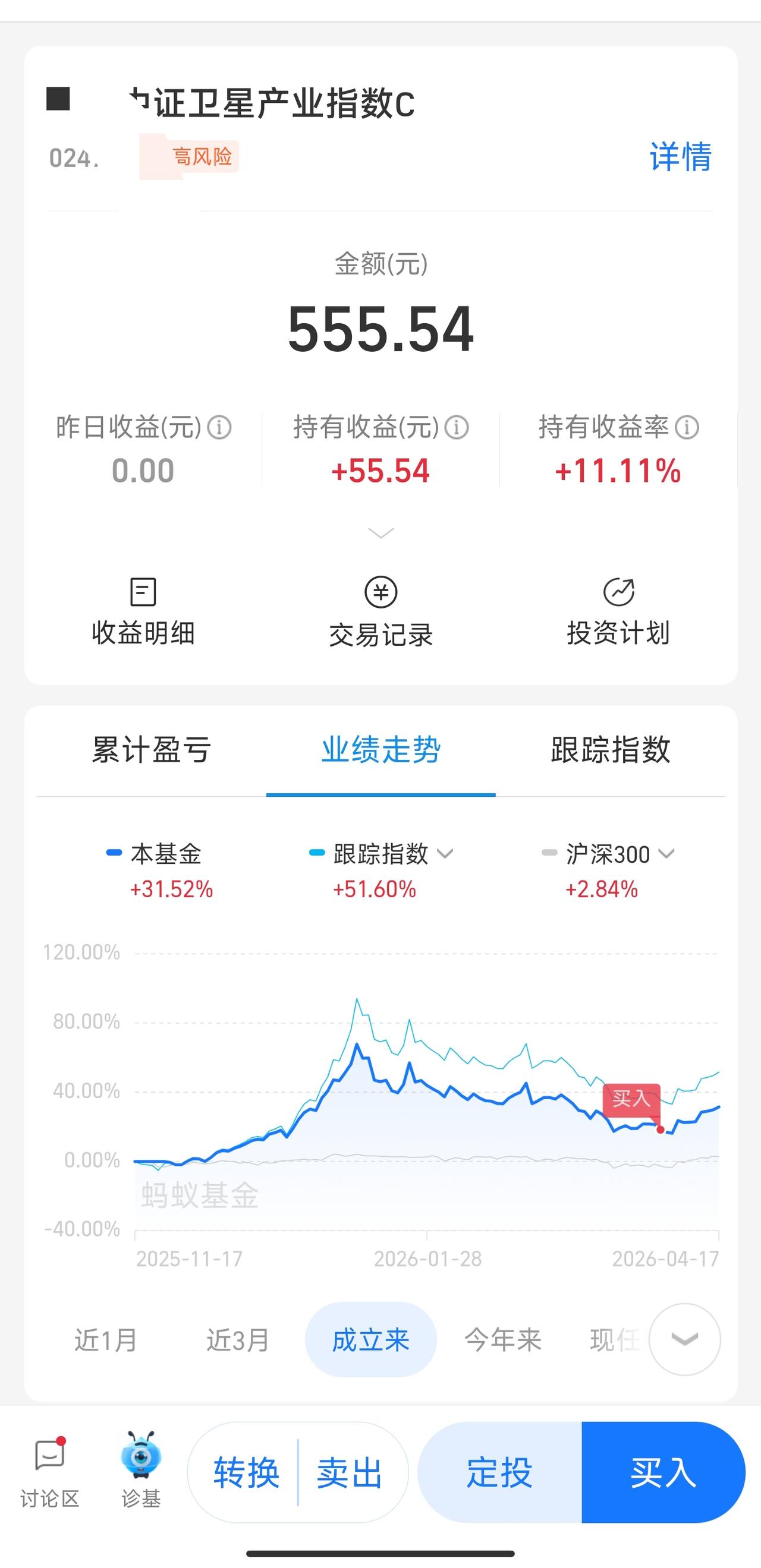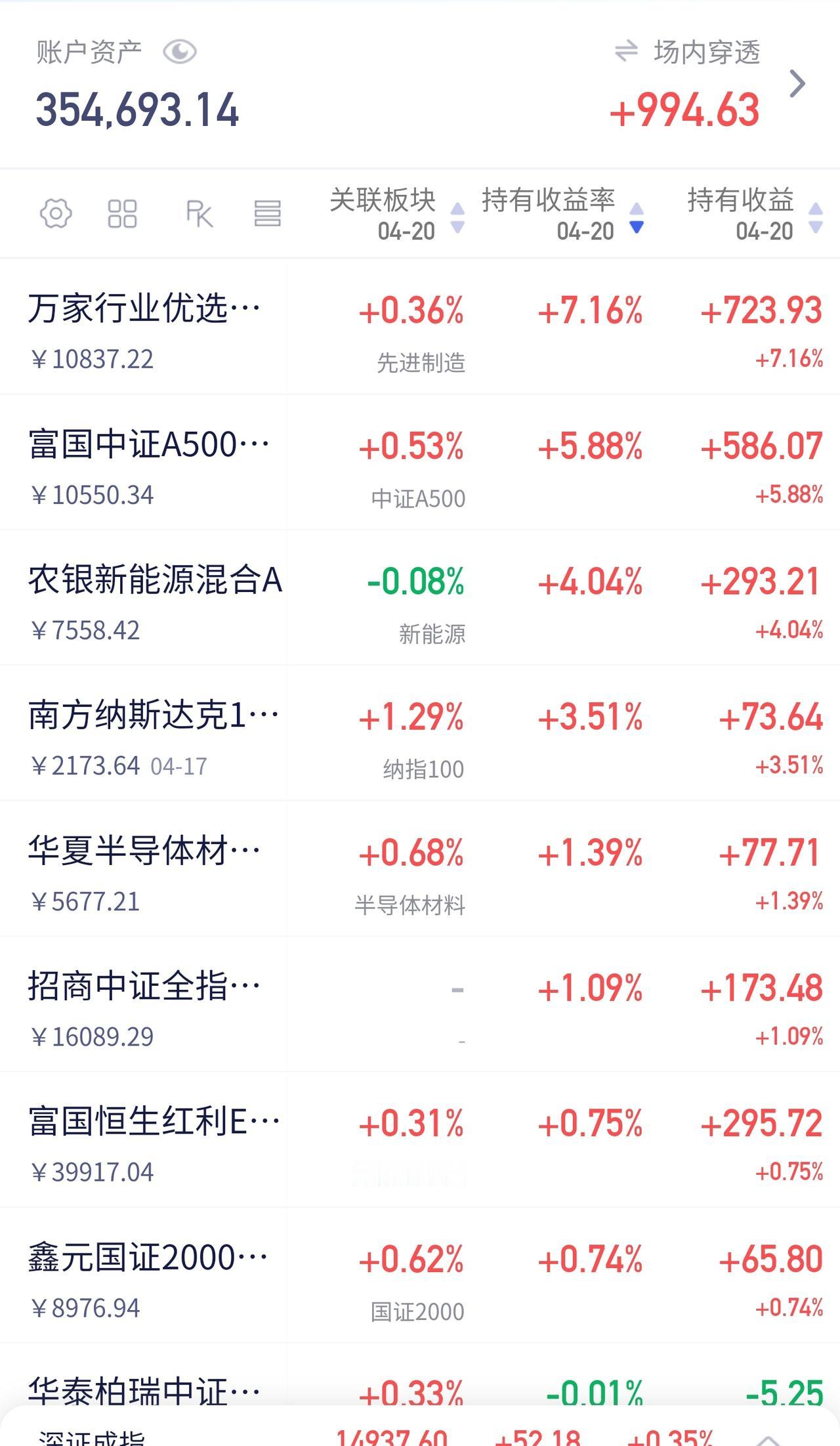 今天大A挺争气,低开高走,成交量放大1500亿,商业航天带队冲锋。 总体感受:有量、有轮动、有承接——三位一体,教科书式的健康走势。就像吃火锅,毛肚、鸭肠、黄喉都齐了,就差开涮。 🎯 接下来的剧本:等月底“爆雷”再捡漏 4月底是年报和一季报的“交卷截止日”,每年都有几个“学渣”公司把行业带沟里。到时候震荡一下,就是我分批加仓的时机。 4月2号定投的商业航天,还没来得及上仓位,它就直接起飞了——今天算下来,涨幅已经超过15%。 你说可惜吗?可惜。 但让我现在追?不太可能。 投资就像追公交车,错过一班就等下一班,千万别跑着去扒门,容易摔着。 (本文为个人投资日记,记录个人操作与市场观察,包含主观判断,绝不构成任何投资建议。) 你认为接下来股市是什么走势基金 投资理财