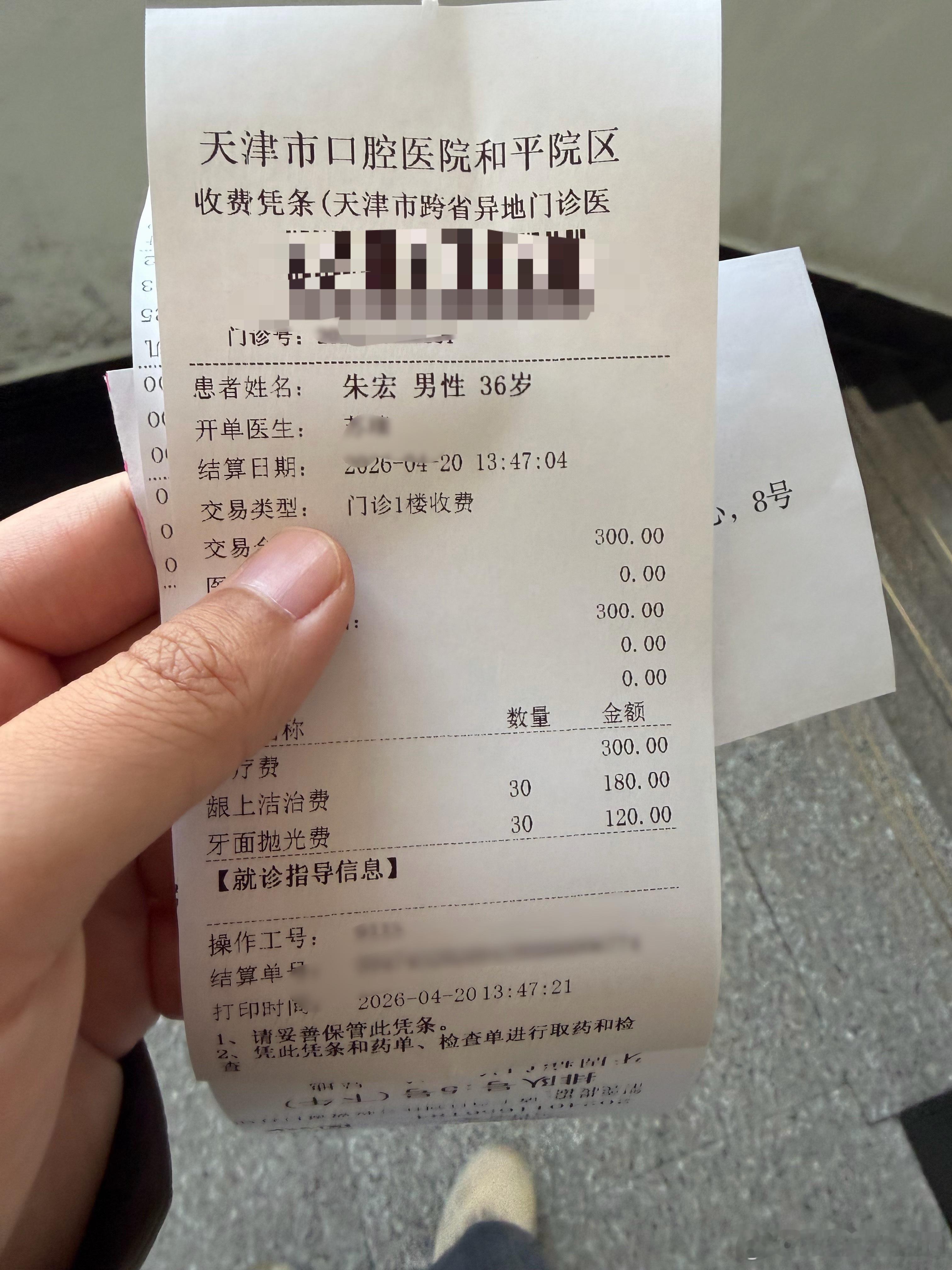 今天消费315元,主要就是洗牙,清洗一下价格是按牙数给的,一颗30元…去北京治疗时间也是非常赶的…天津在地铁口10多分钟就到…
