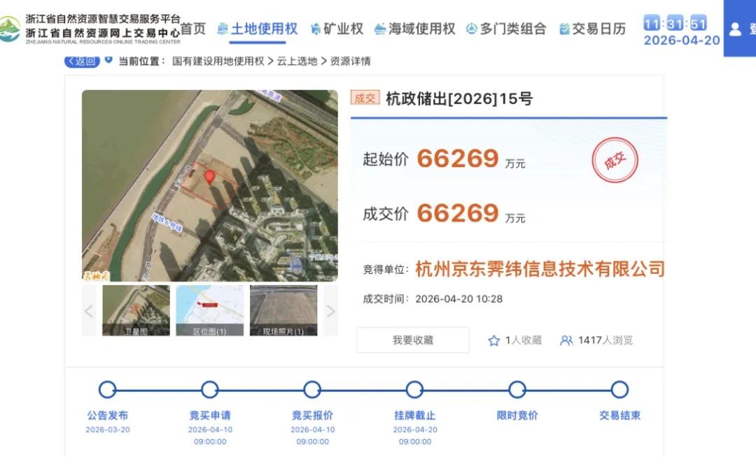 刘强东在杭州拿地了。 4月20日,京东旗下公司以6.63亿元底价拿下杭州钱江世纪城沿江商务商业用地,地块紧邻地铁、区位优越,要求40年整体自持不得转让。 京东计划在此投资约20亿元,打造京东浙江区域中心,整合零售、物流、科技等业务,布局京东MALL,助力京东加码长三角总部重资产布局。 这并非个例,近期字节跳动也在北京接连拿地,互联网大厂正以重资产模式加固产业布局。