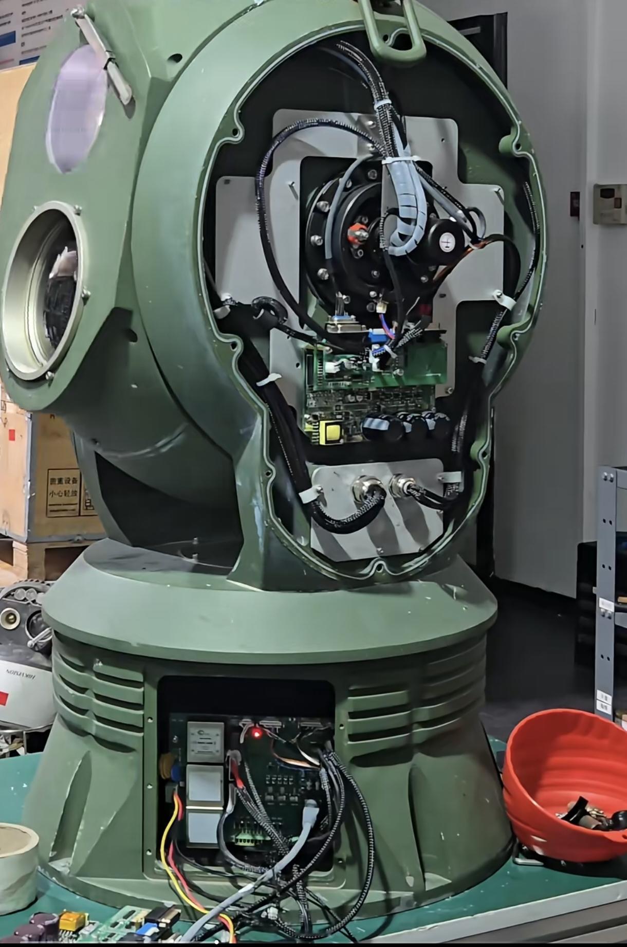 超大重载双光电转台,瞧这颜色涂装,上下两个镜头,军用海防和边境防护吧。设备虽有些年头,屏幕上显示的图像挺清晰。估计是特种高端机,是不是我们平时看火箭发射说的“光学雷达跟踪正常”,北京收到[吐舌]