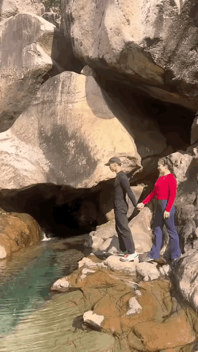 情侣出去游玩,遇到一处有水的地方,男士一步迈没过去,立马用了一个支撑的动作,搭了一个人桥,让女孩踩着她的身体,完成了过桥动作,女孩随即用手拉了一下男士,同样成功上岸。 这样一对合作默契,心里灵犀的情侣,大家是否羡慕呢?