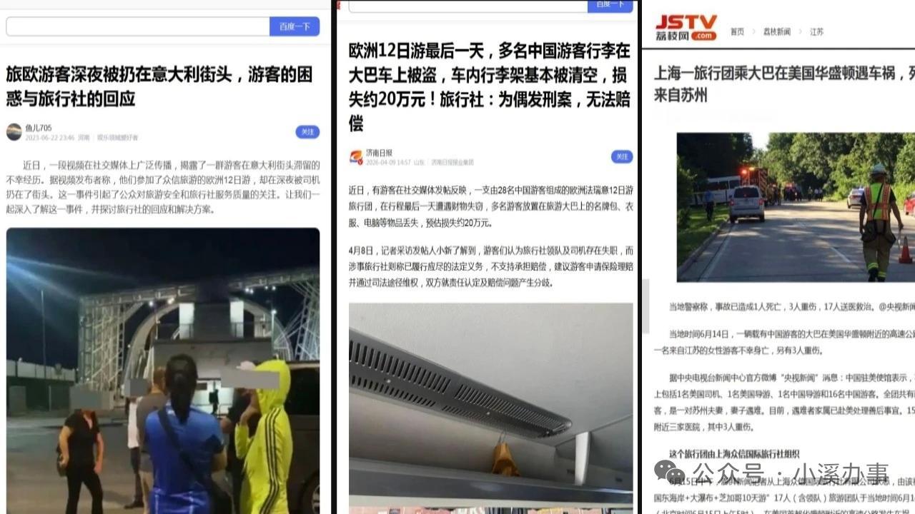 游客报团遇消费陷阱 众信旅游屡遭投诉 2026年4月17日,济南市民李先生向媒体反映,自己通过山东众信优游国际旅行社报名山西陕西6日跟团游,旅行期间接连遭遇诸多问题,不仅团内出现同团不同价的不合理情况,旅行社还擅自更改行程安排,随意取消原定用餐计划,李先生甚至怀疑自己被旅行社违规“转卖”给其他团队。 据了解,众信旅游集团主打出境游业务,在全国多地设有分公司。记者调查发现,搜索“众信旅游”会出现两个不同网站,分别标注“众信旅游集团”与“众信旅游|悠哉网”,二者标识、网址存在差异,却共用同一客服电话。而记者尝试拨打其山东分公司、济南分公司联系电话,均提示为空号,游客维权渠道受阻。 事实上,众信旅游因服务乱象、安全保障缺失,已多次遭到消费者投诉,各类旅游安全与服务问题频发。 2023年6月,有游客报名欧洲12日游,竟被司机深夜丢弃在意大利街头; 2025年,游客花费17万元参团非洲高端野奢游,行程中遭遇持刀入室抢劫,不仅财产遭受重大损失,人员也受到伤害;2026年4月初,又有游客通过其旗下竹园国旅参团欧洲游,行程最后一天,多名游客放在大巴上的贵重财物被盗,预估损失近20万元,游客认为旅行社领队与司机存在严重失职,双方就责任划分和赔偿事宜始终无法达成一致。 不少游客选择跟团游本是为了保障出行安全,可众信旅游多次出现服务违规、安全事故,让游客权益屡屡受损,也引发了大众对跟团游服务规范的担忧。 来源 综合小溪办事