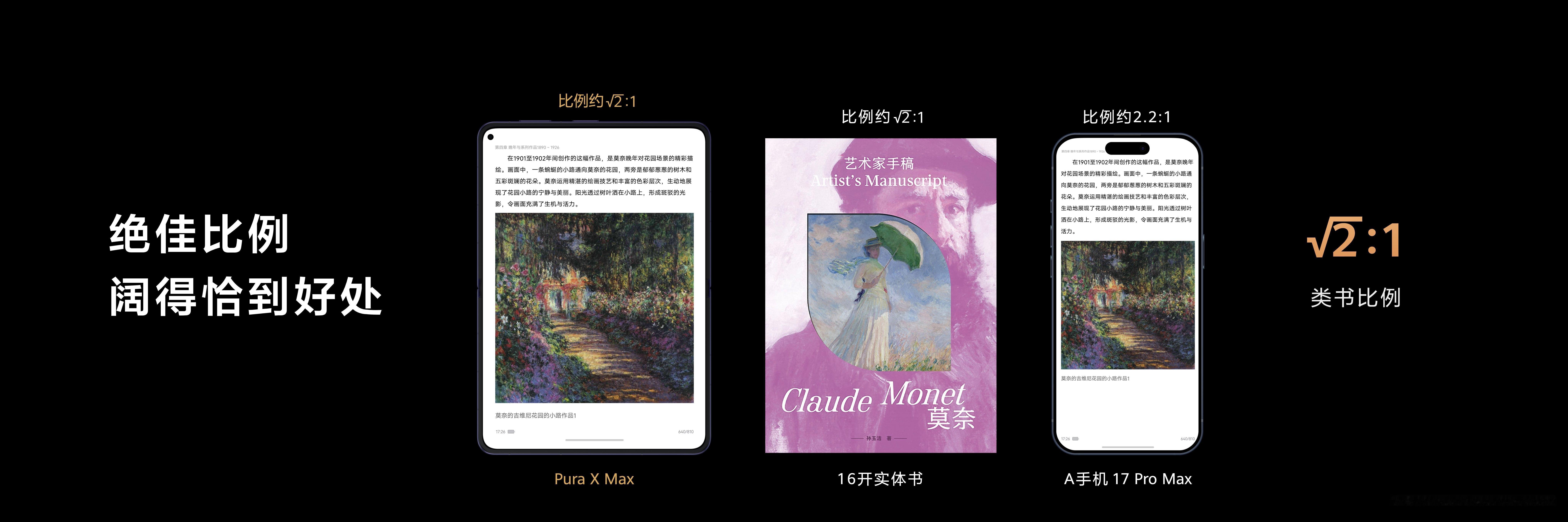 华为Pura X Max的双面阔形屏,屏幕更大,横向内容显示更多,照片铺的更满,交互更方便,创作更专业,好处Max!余承东谈大阔折形态设计灵感大阔折形态好在哪