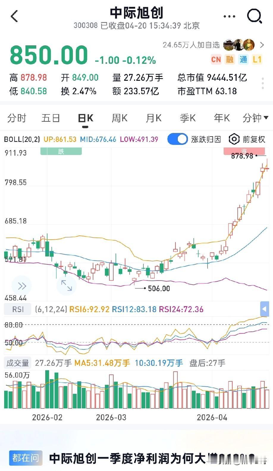 抱团——A股亘古不变的铁律!当年赛道股的疯狂,正在CPO重演! 通策医疗——7亿净利润的市值1400亿 片仔癀——20亿净利润巅峰市值3000亿 爱尔眼科——30亿净利润就令市值飙升至5000亿 隆基绿能——90亿净利润帮助公司市值站上5000亿高位 金龙鱼——50亿净利润市值突破7000亿 海天味业——60亿净利润下的巅峰市值直冲7000亿 更疯狂的是新能源汽车时代的宁德时代,早年净利润还停留在50亿级别,机构抱团直接把市值干到1.5万亿,彻底颠覆传统估值逻辑! 显然,回望前几年的黄金赛道,每一个都上演过“利润与市值极致背离”的疯狂,因为A股从来没有新鲜事,就是所谓的估值神话、市值天花板,本质都是赛道抱团的轮回:只要赛道足够顺、业绩足够确定,机构抱团的疯狂,能把估值打到你怀疑人生,从来不用按常规市盈率算账! 如今,这份疯狂轮到CPO赛道,轮到中际旭创!今年中际旭创预计净利润300-350亿,对照历史赛道股的抱团剧本,以机构的操盘力度,不拉到1.7万亿市值根本不会罢休!前几轮赛道股的走势早已证明,风口之上,业绩增速就是最强逻辑,赛道景气就是最大底气,不要用静态估值去衡量抱团行情,更不要低估资金对高景气赛道的狂热。 历史不断重演,逻辑从未改变,当下的CPO,就是当年的新能源、大消费,甚至壁垒更强,利润更高,普通人最有机会实现财富跃迁的就是抓住赛道主升浪,才能踏准A股最核心的赚钱节奏!