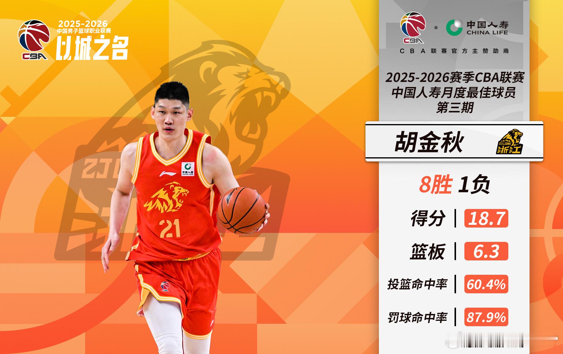 相比之下,胡金秋则是一如既往地稳定,稳定到了几乎每个赛季都自动入选常规赛MVP候选人且已难以引起外界讨论的地步。本赛季,广厦高居CBA战绩榜第二,领先深圳男篮3个胜场。胡金秋场均16.8分、5.9个篮板,投篮命中率高达64.9%,VORP为6.63,在CBA所有本土球员中高居第一。他本赛季已两次当选月最佳,是CBA本土球员中当选月最佳次数最多的球员。