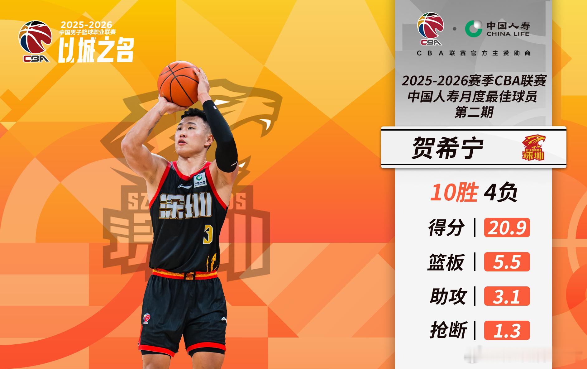 贺希宁的优势在于球队成绩和个人数据双双在本赛季实现重要突破:深圳男篮目前位居联赛第三,本赛季常规赛15连胜创队史纪录。贺希宁19.9分、4.9个篮板、3.8次助攻、1.5次抢断,得分创生涯新高,也是所有常规赛MVP候选人中得分最高者。贺希宁目前的累计获胜贡献值(VORP)为6.02,在所有本土球员中高居第二。他三次当选周最佳,是本赛季所有CBA本土球员中融应该殊荣最多的球员,另外还当选一次月最佳。