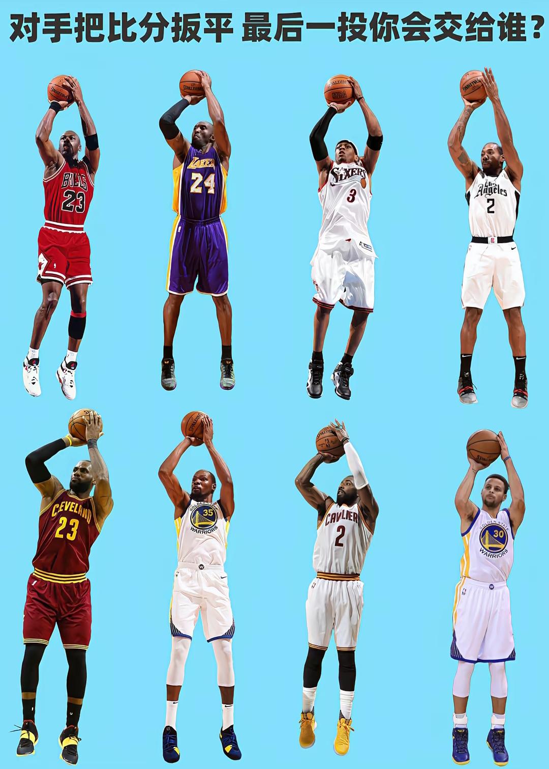 若所在球队被对手扳平,且只剩最后2秒,这关键球会交给谁处理?是乔丹、科比、艾弗森、莱昂纳德,还是詹姆斯、杜兰特、欧文或者库里? 输球不怪队友