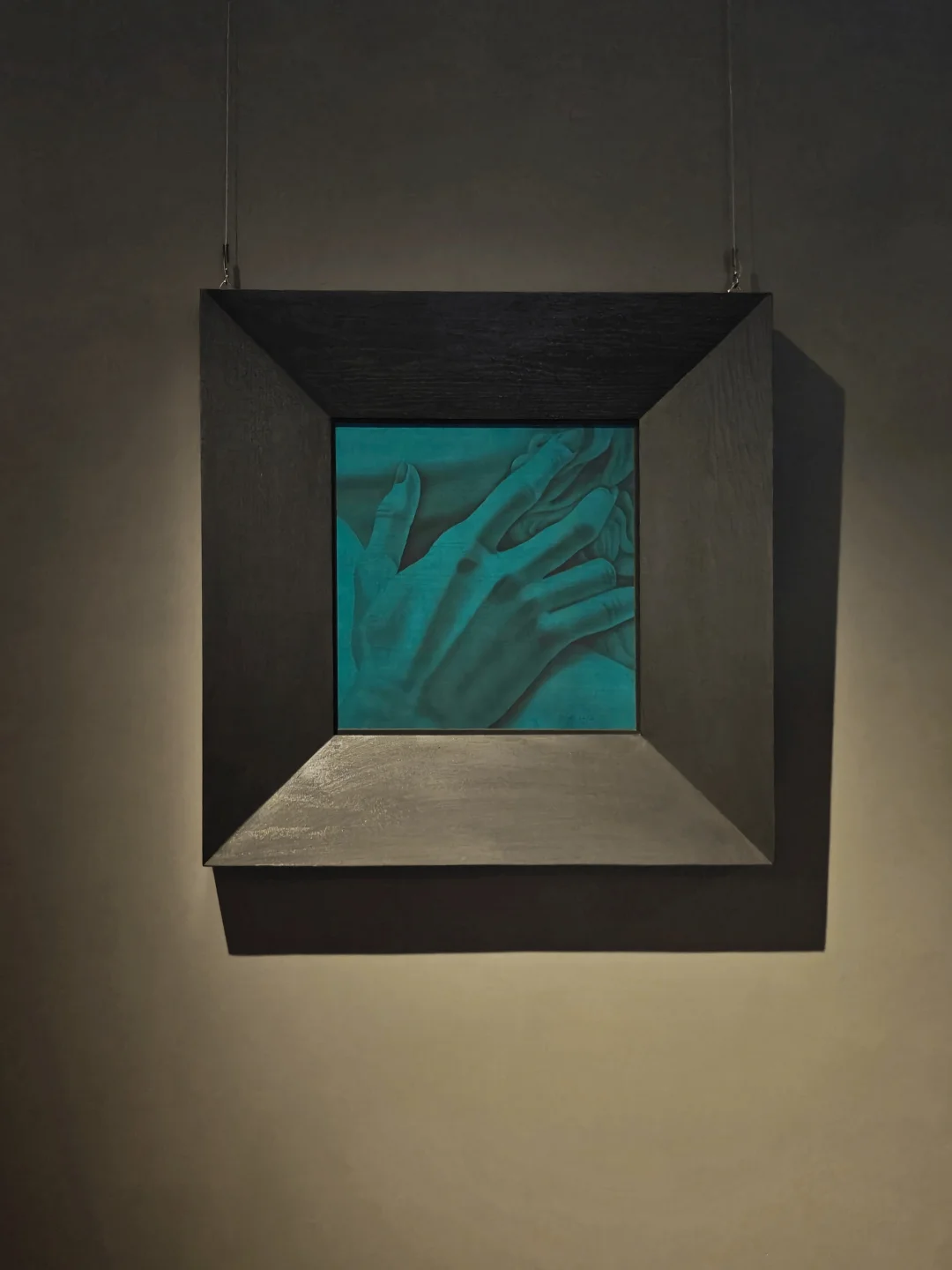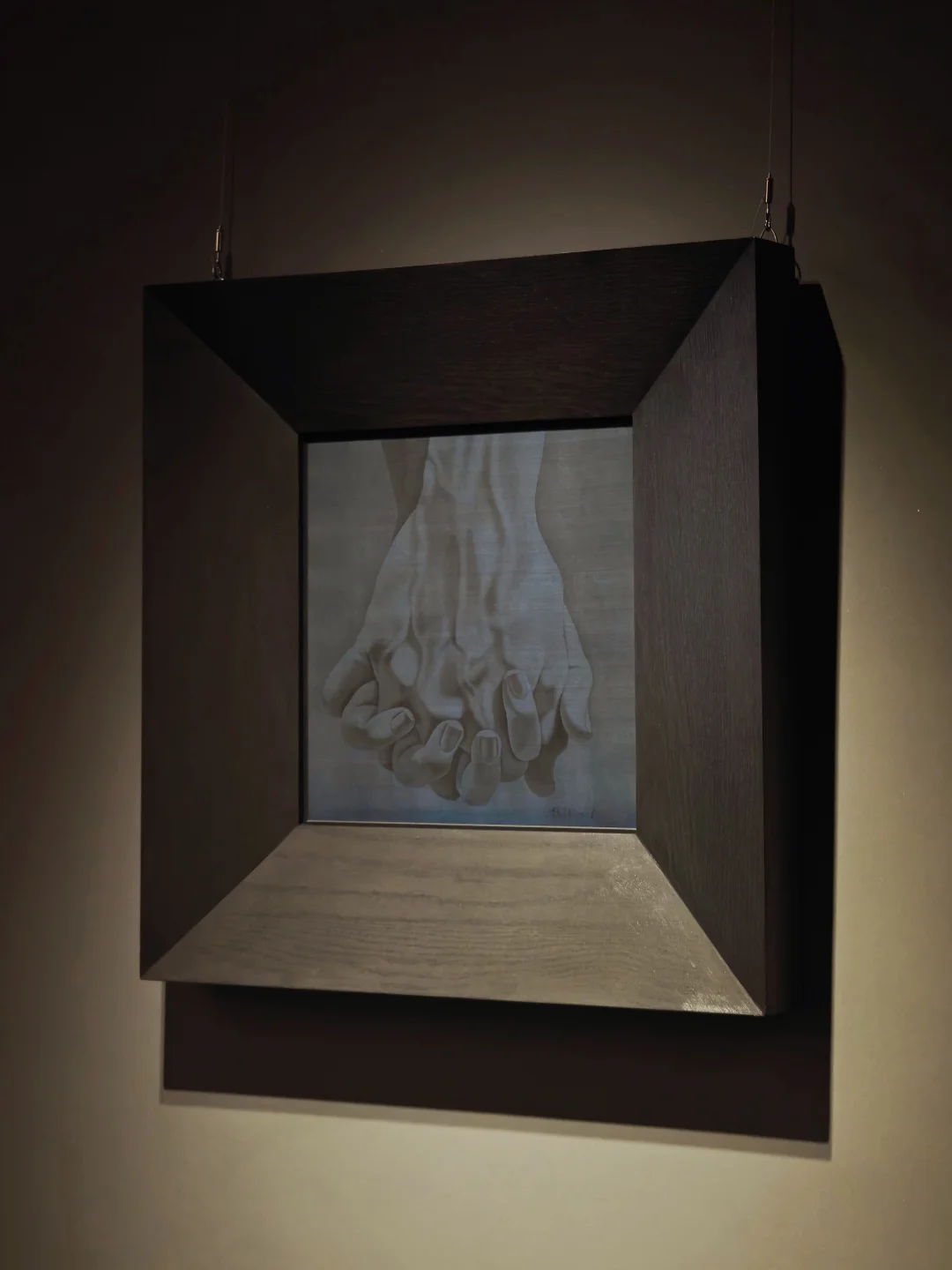 他解构文艺复兴经典,以骷髅、晕彩和阴影覆盖,让古典崇高在当代语境中获得生死之间的松弛亲密。另一个展出的系列,以手和脸为核心符号,在透明绢本上描摹亲密关系的幽微光谱:靠近、试探、相拥、陪伴,将流动、复杂、克制的情感真实地呈现在画面之中。