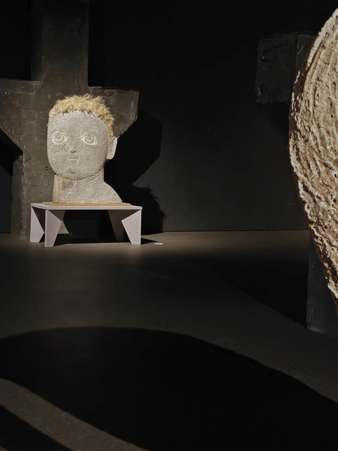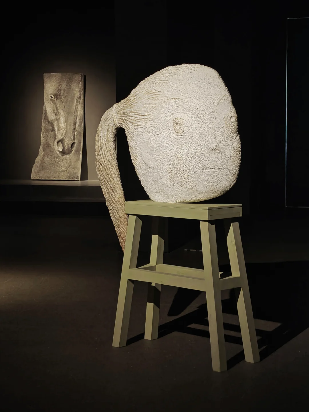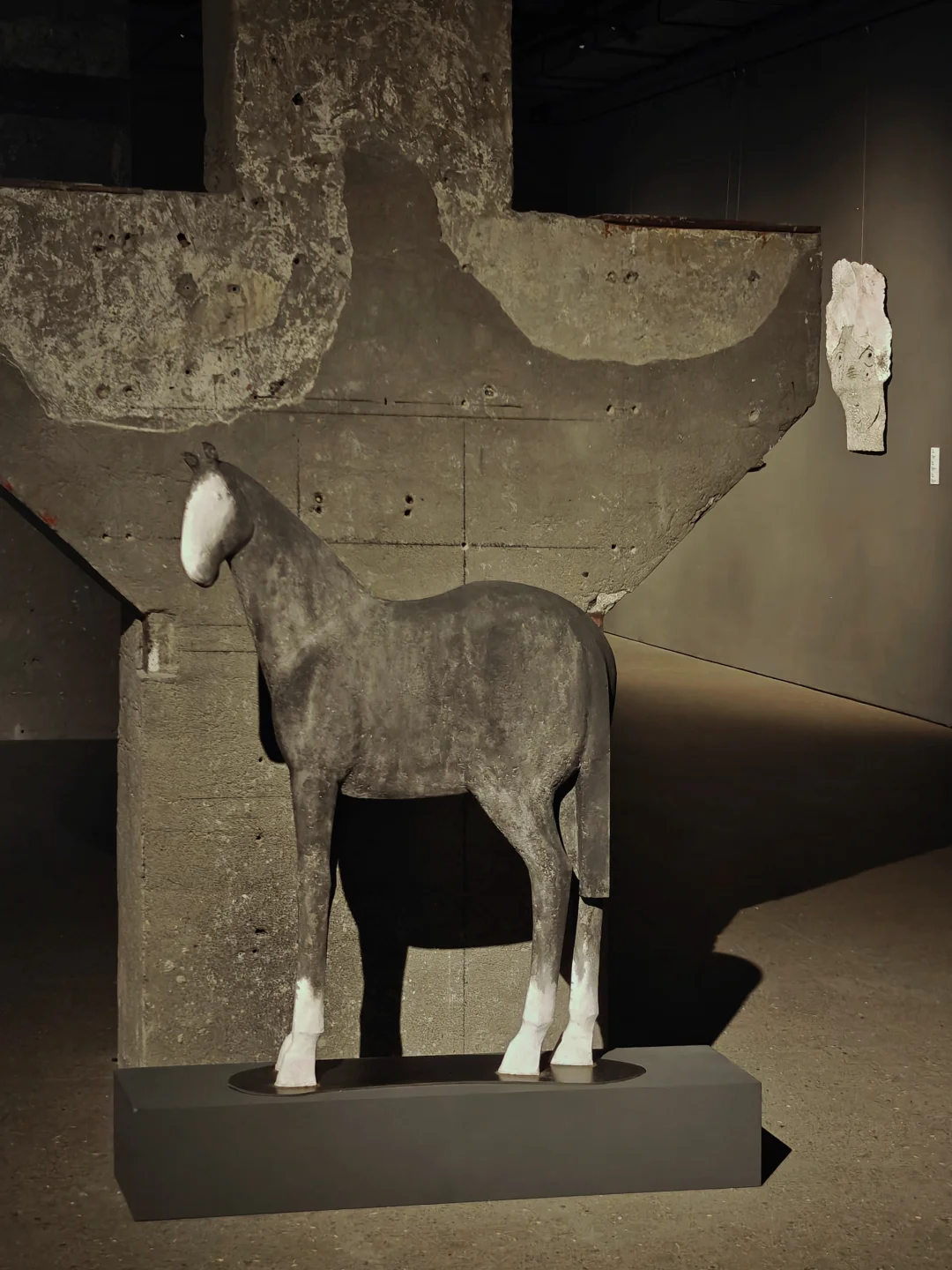 她将轻盈脆弱的宣纸以自主研发的纸浆材料形式,转化为兼具骨骼强度和肌肤质感的浮雕式雕塑,消解征服与驯服,呈现生命之间原始、沉默且深切的信任。人与马系列是她出圈的经典作品,展览中有《六骏印象》《黑马》等作品,而近期作品则充满童真。