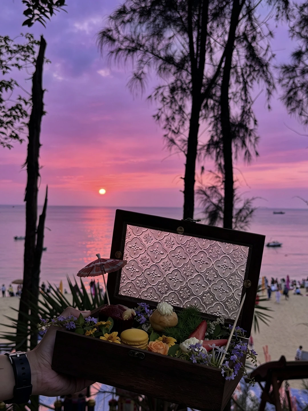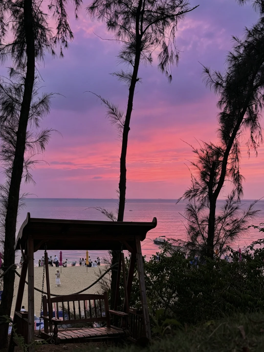 就在紫霞湾🌊 一定要选天气好的时候去紫霞湾看晚霞 🌅北海最美晚霞、日落最佳拍照点 紫红晚霞,最美日落就在紫霞湾 建议下午4点半-5点左右到 吃个下午茶,拍下晚霞日落🌄 再吃个晚餐🍲 记录生活的美好!