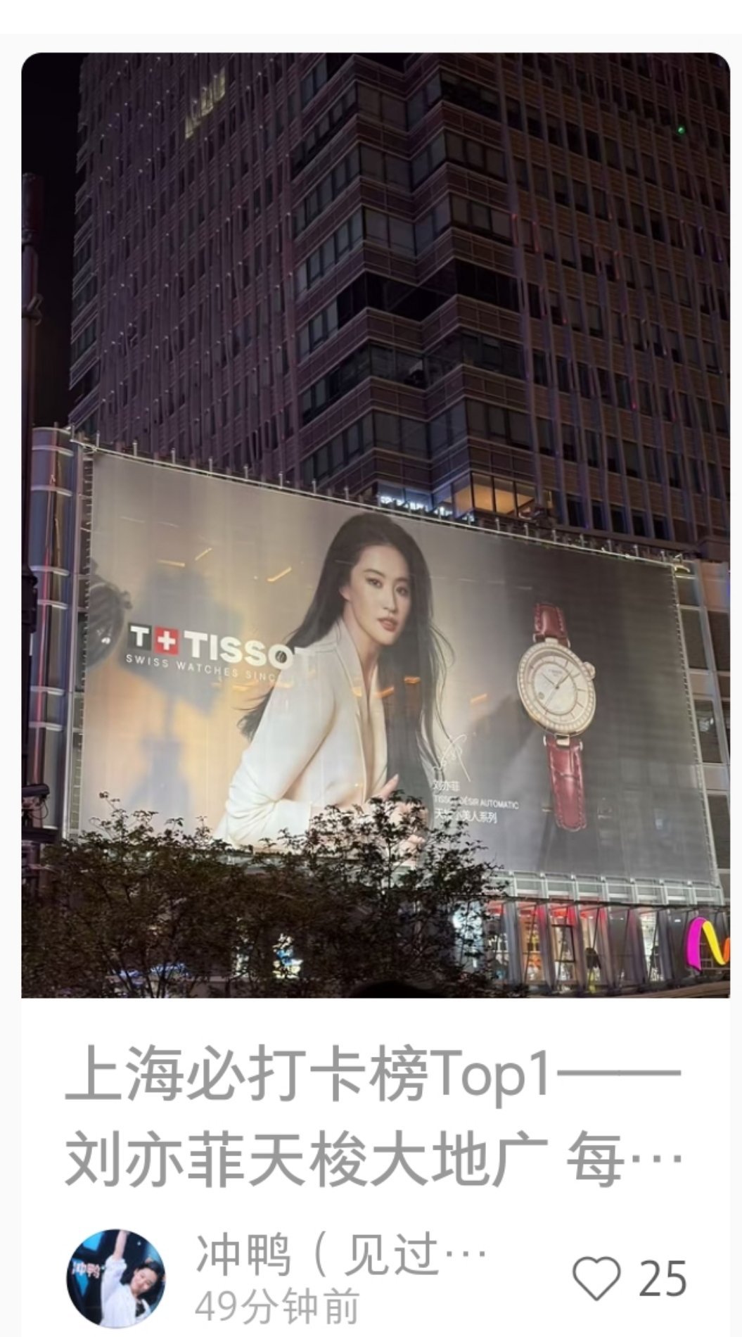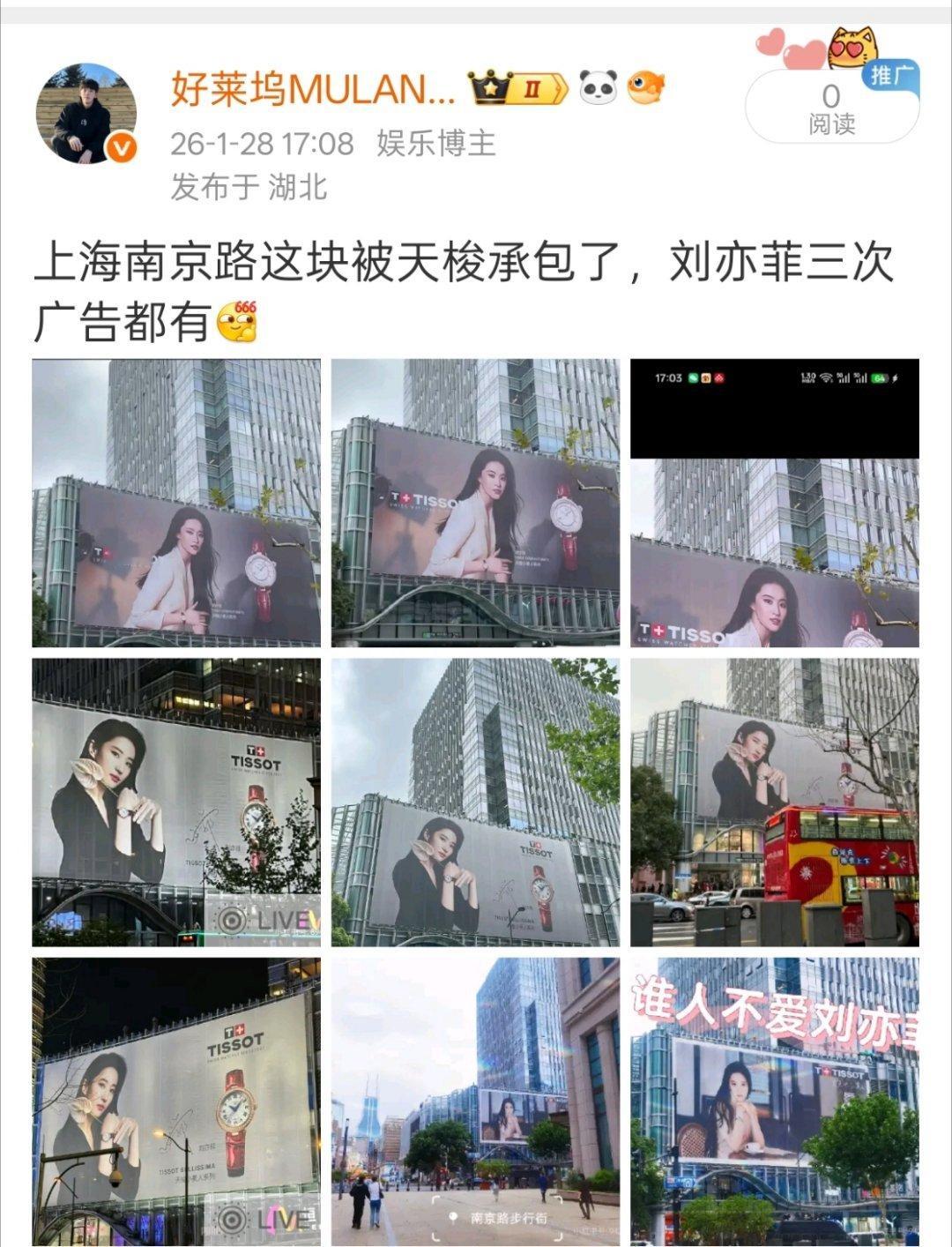 刘亦菲这个地广差不多铺了三个月了,从一月份开始铺起,这个位置是天梭专属吧