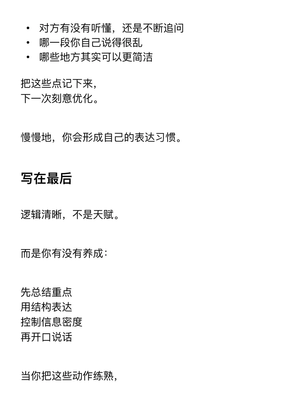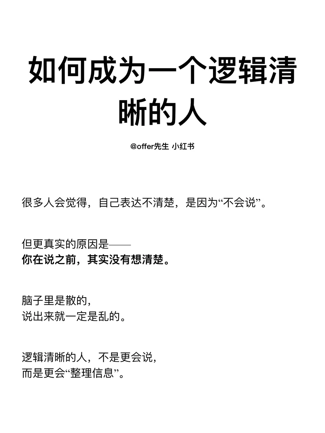 很多人会觉得,自己表达不清楚,是因为“不会说”。 但更真实的原因是—— 你在说之前,其实没有想清楚。 脑子里是散的, 说出来就一定是乱的。 逻辑清晰的人,不是更会说, 而是更会“整理信息”。 … 一个认真分享“找工作”干货的账号,真诚、有料、不说空话 ·