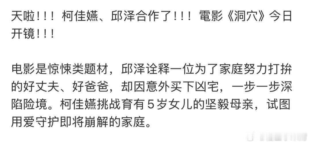 柯佳嬿邱泽合作电影柯佳嬿邱泽合作电影洞穴救命!柯佳嬿×邱泽的新片设定也太带感了,凶宅+家庭线已经开始脑补剧情了!