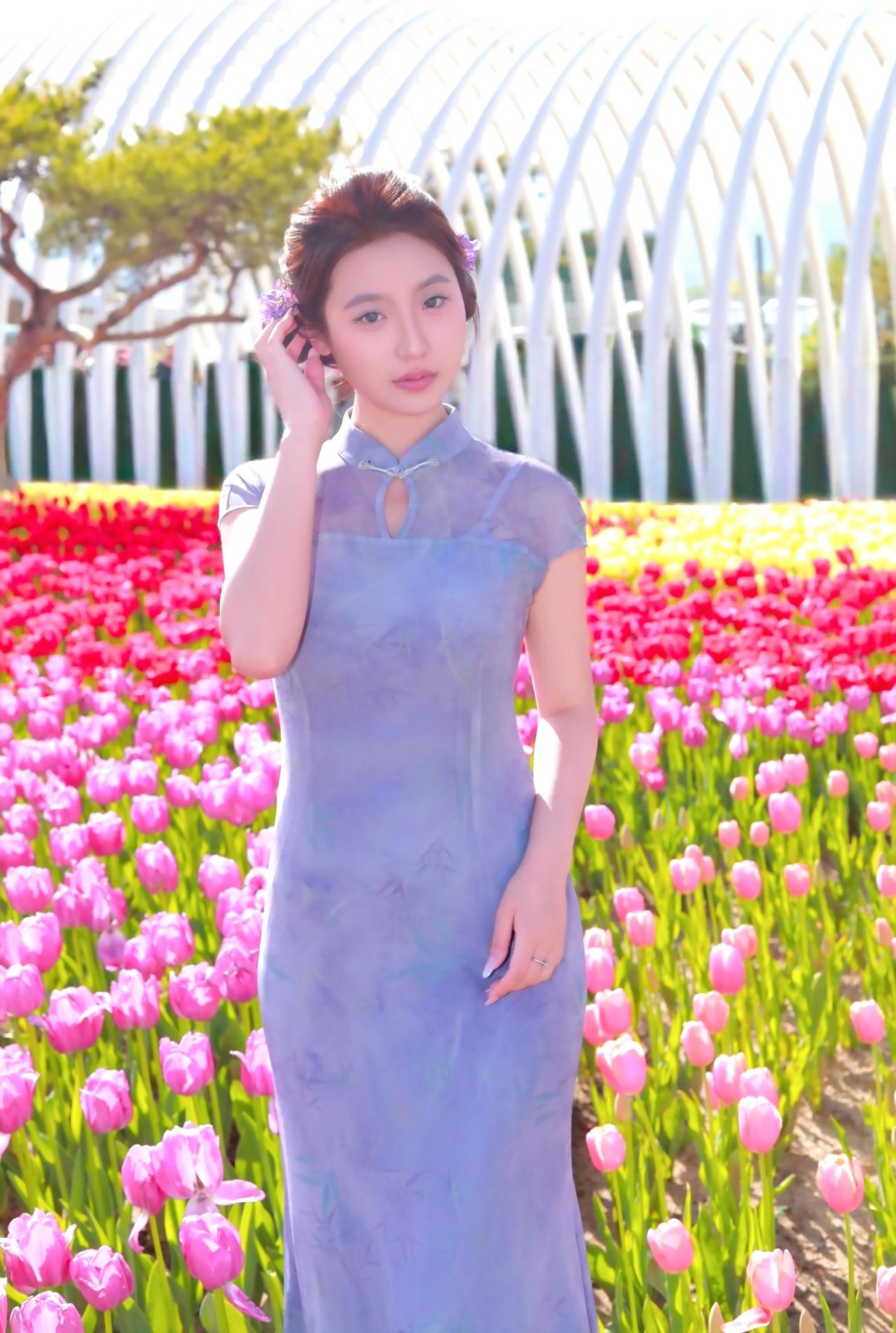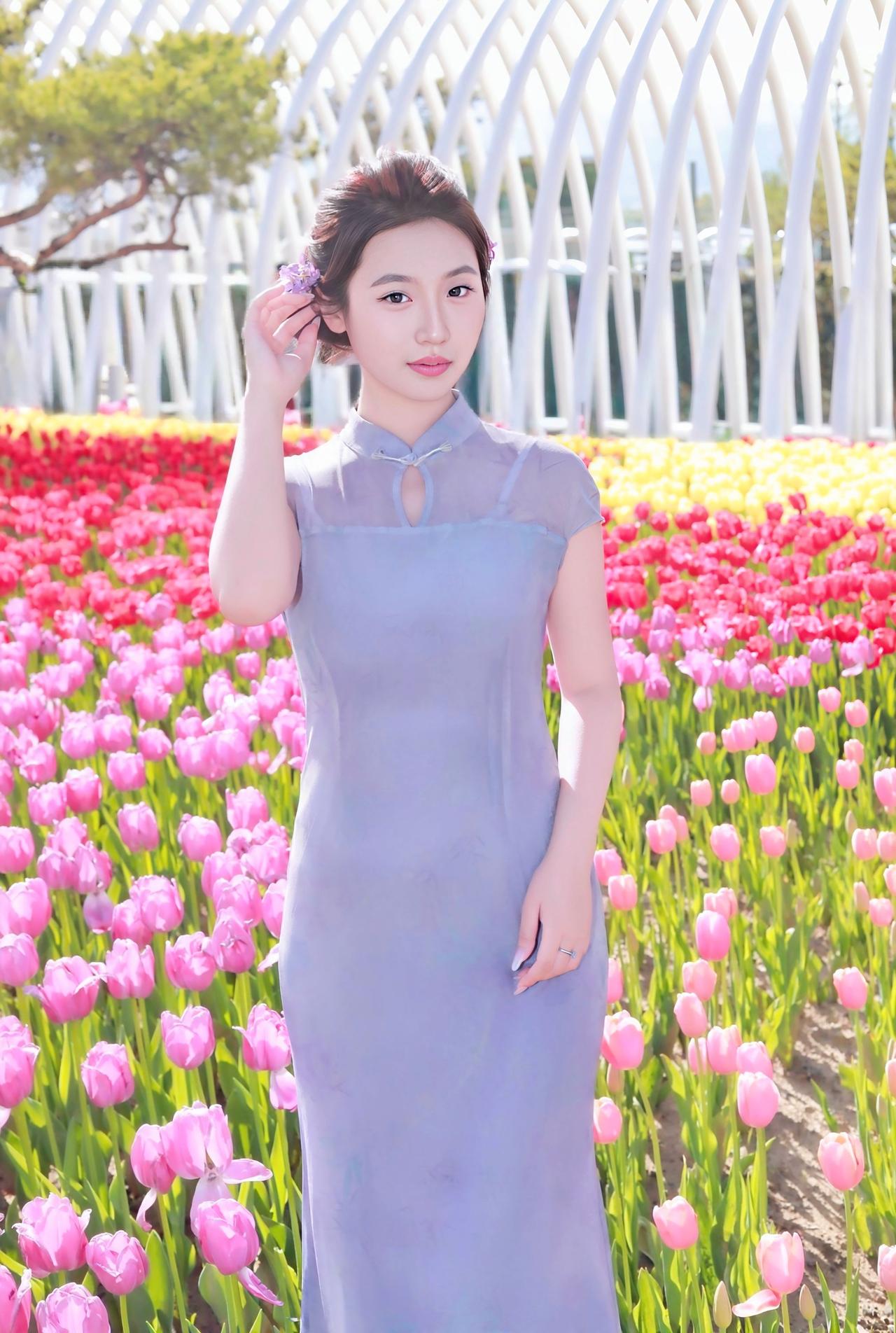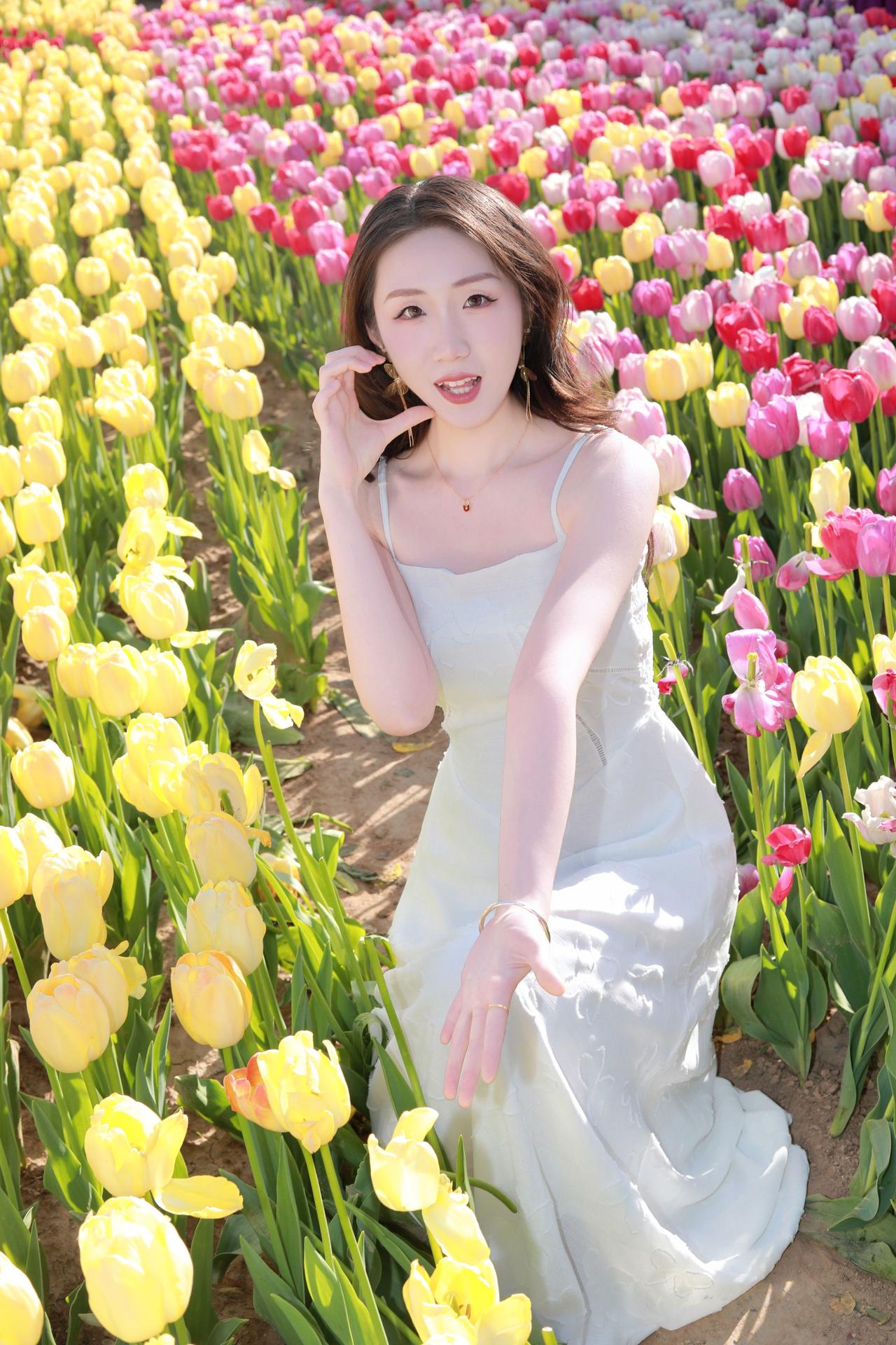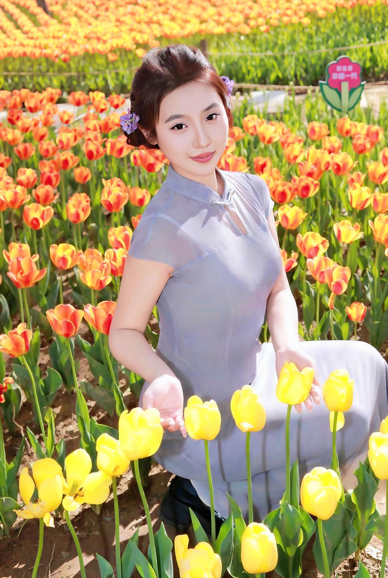 人像摄影约拍跟拍晋阳湖郁金香人像原创摄影我镜头里的美女春天当然要和郁金香合影十送