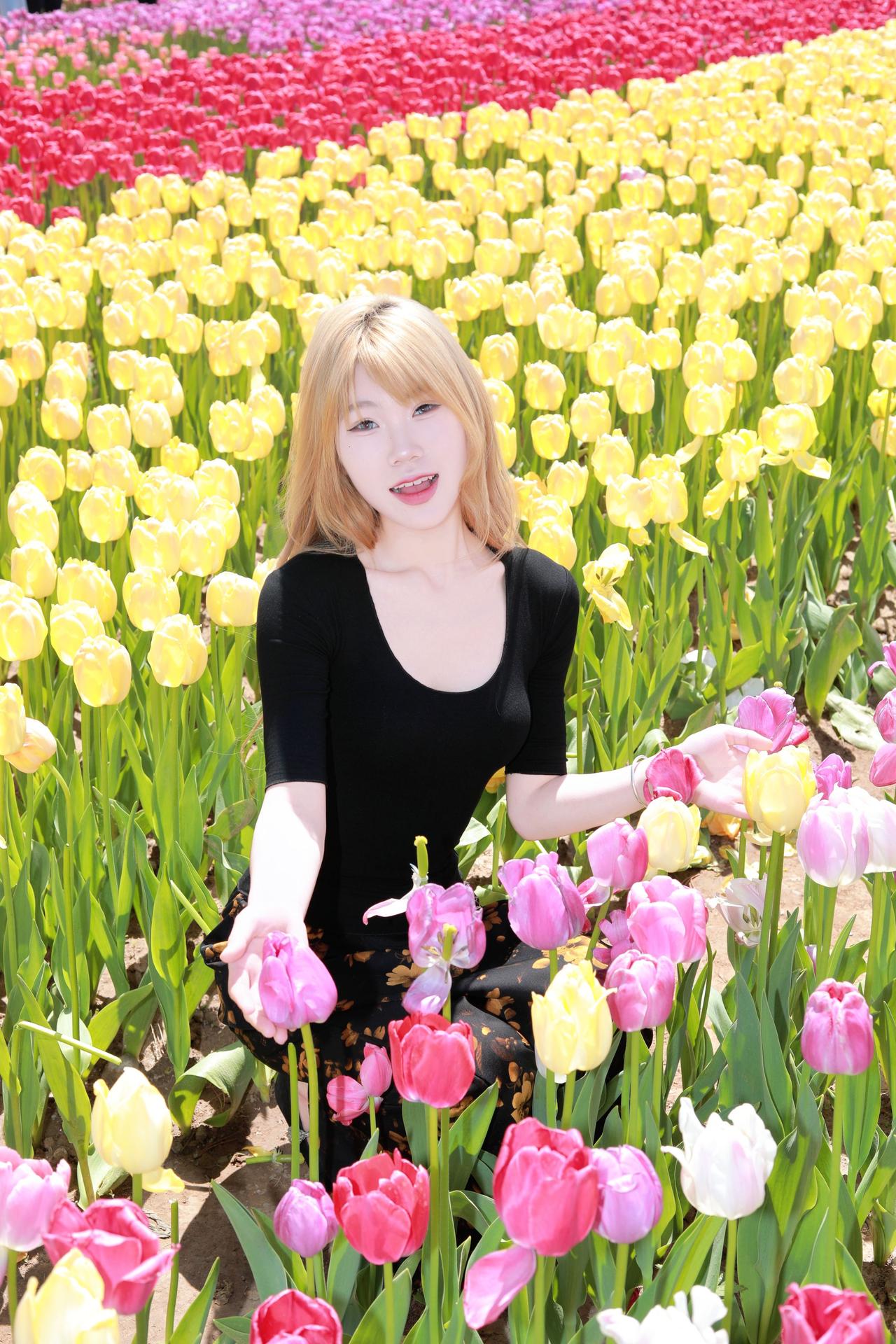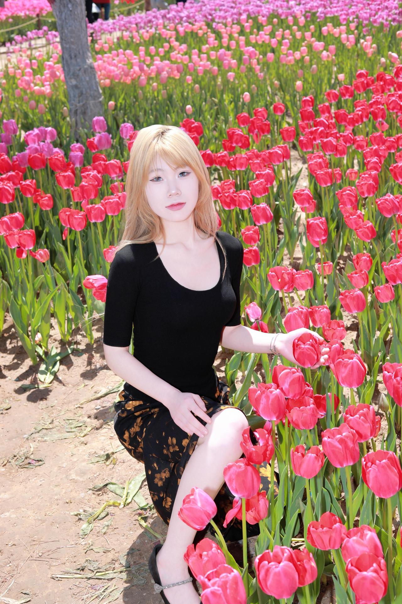 太原人像摄影约拍跟拍郁金香花海 郁金香人像原创原图直出照片