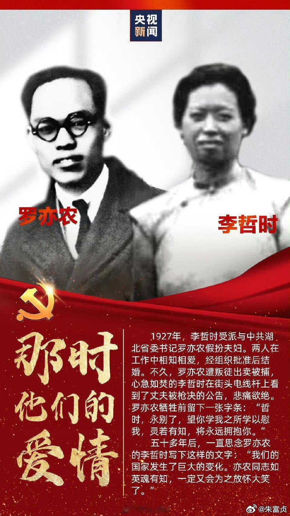 1928年4月15日,罗亦农不幸在上海公共租界戈登路(今江宁路)望志里被捕,在狱中他写下绝命诗:“慷慨登车去,相期一节全。残躯何足惜,大敌正当前。”表现了一位共产党员视死如归的革命气节。他还深情勉励妻子李哲时,“灵其有知将永远拥抱你,望你学我之所学以慰我”。烈士的短短遗言是留给妻子永远的温情,也是对中国革命的期许。